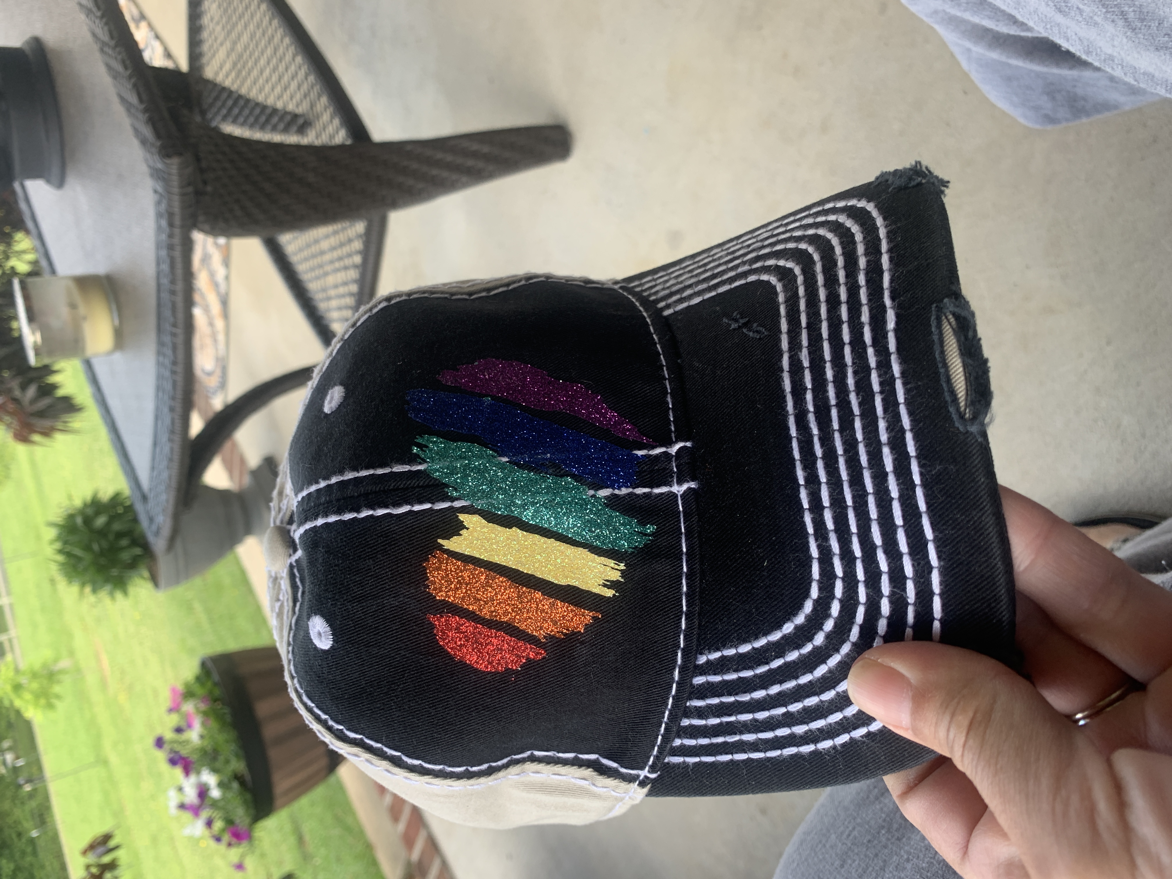 - Heavy raised white contrast color stitching