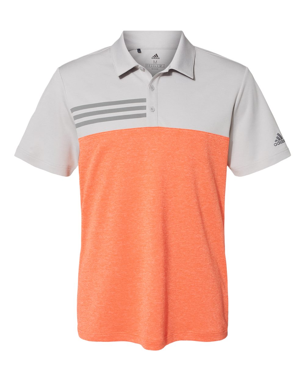 Adidas A508 - Unisex Heathered Colorblock 3-Stripes Sport Shirt - Gray Two Heather / High - Res Coral Heather