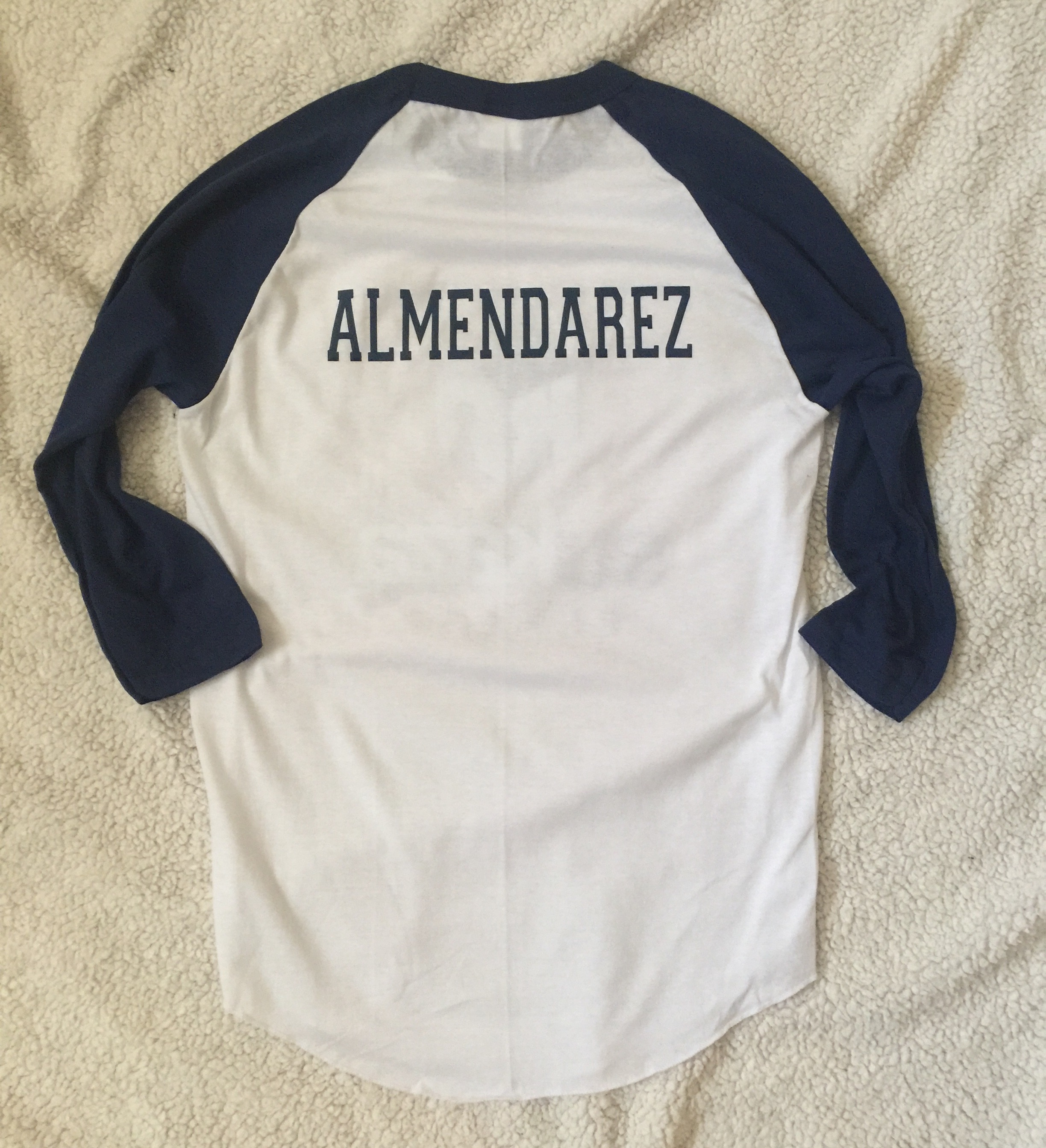 - Contrast color rib-knit collar and raglan sleeves