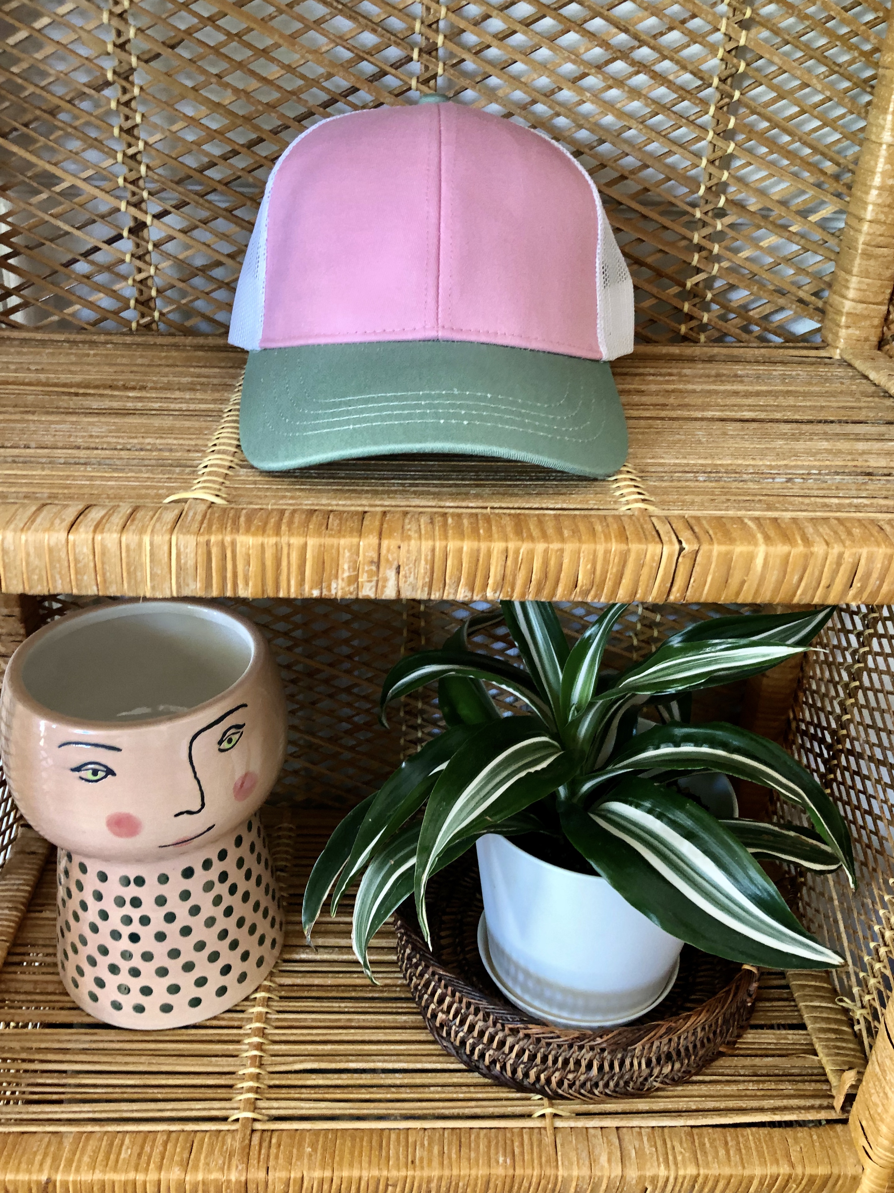 - Contrasting front panels and bill, top button matches bill