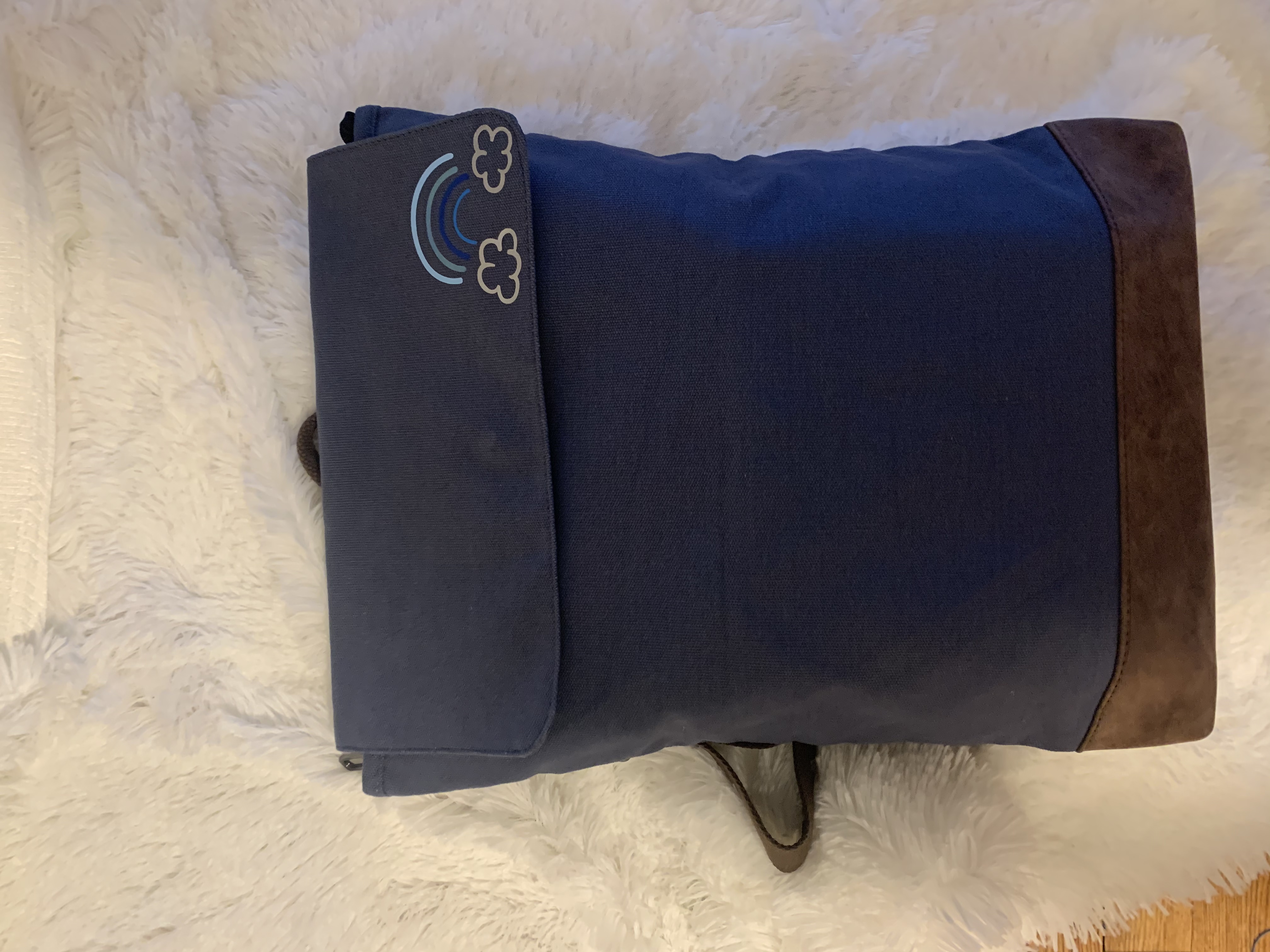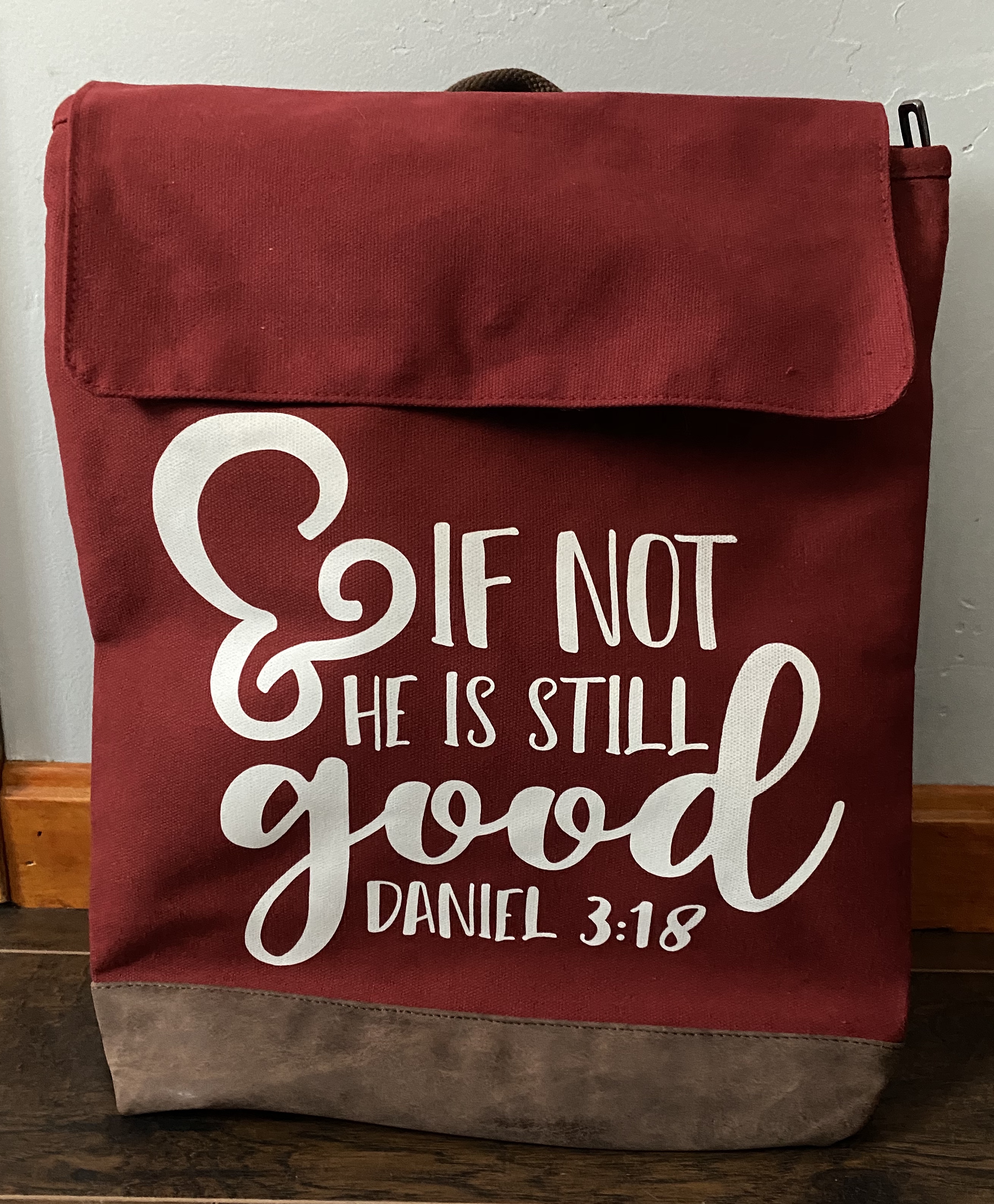 - Cotton webbing, adjustable back straps and top carry handle
