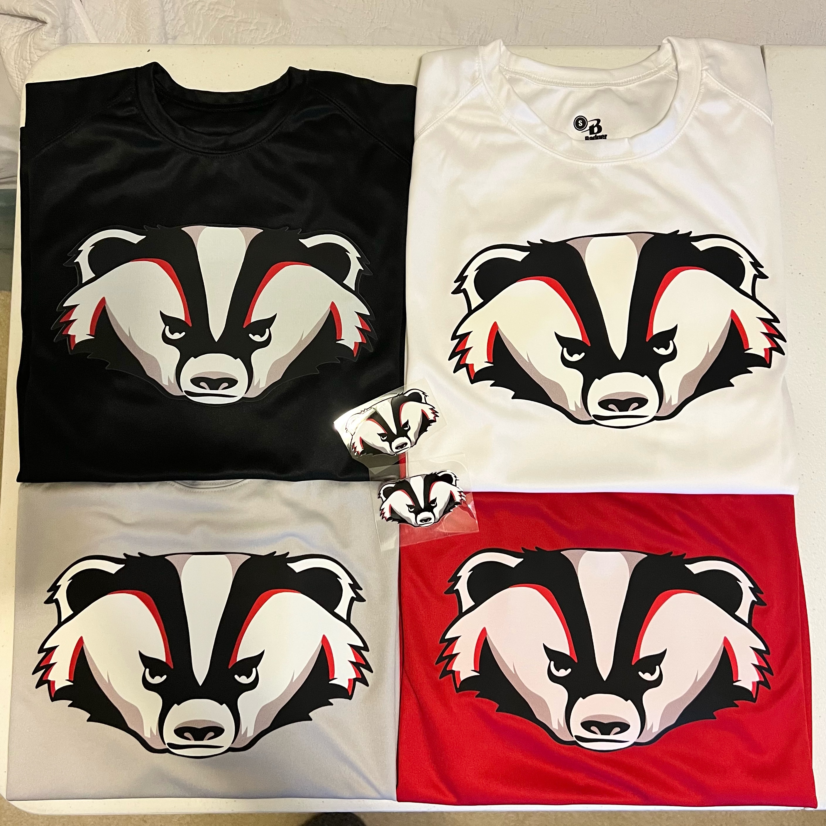 - Badger heat-seal logo on left sleeve