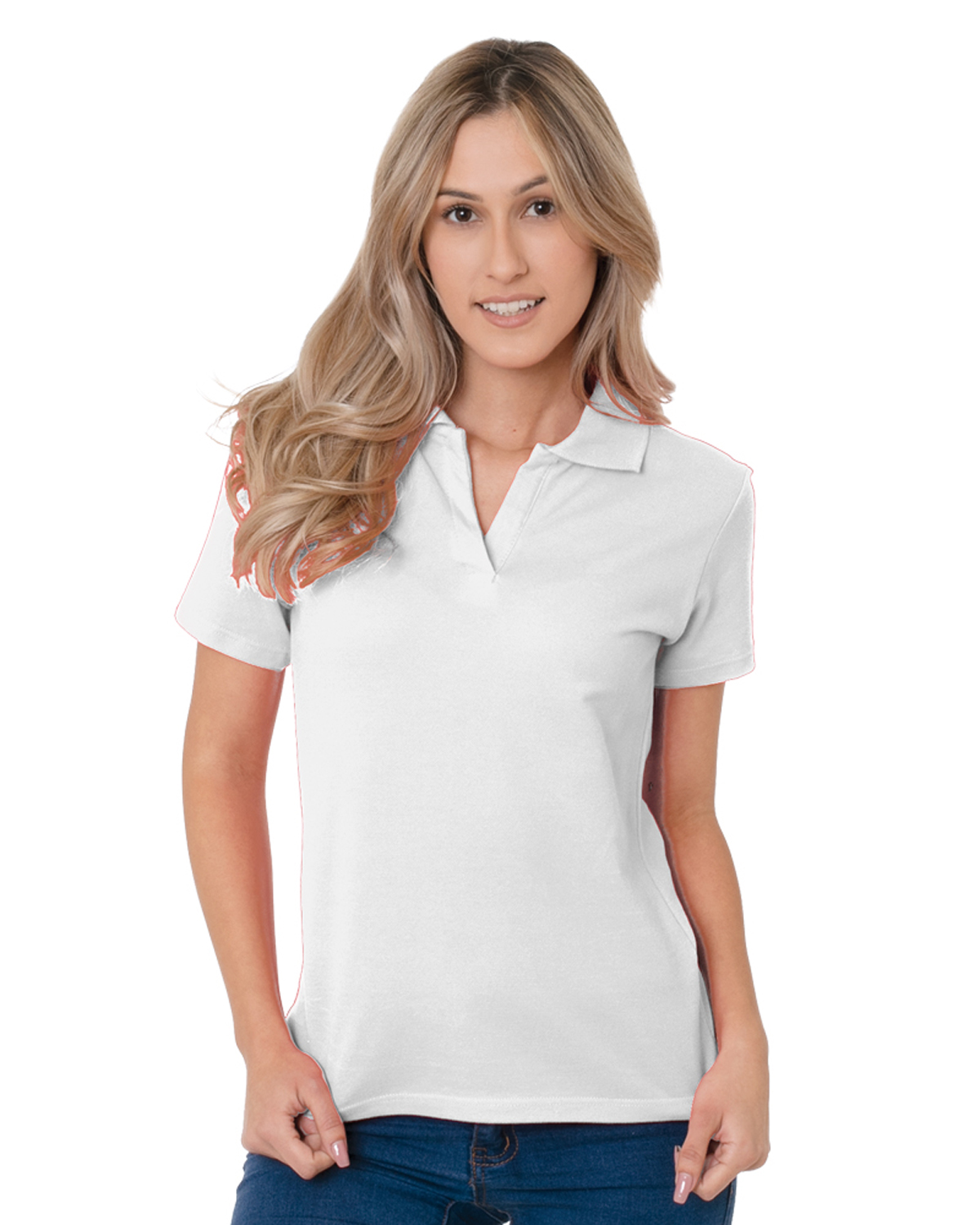 Bayside BA1050 - Junior's 100% Cotton V-Neck Polo - White