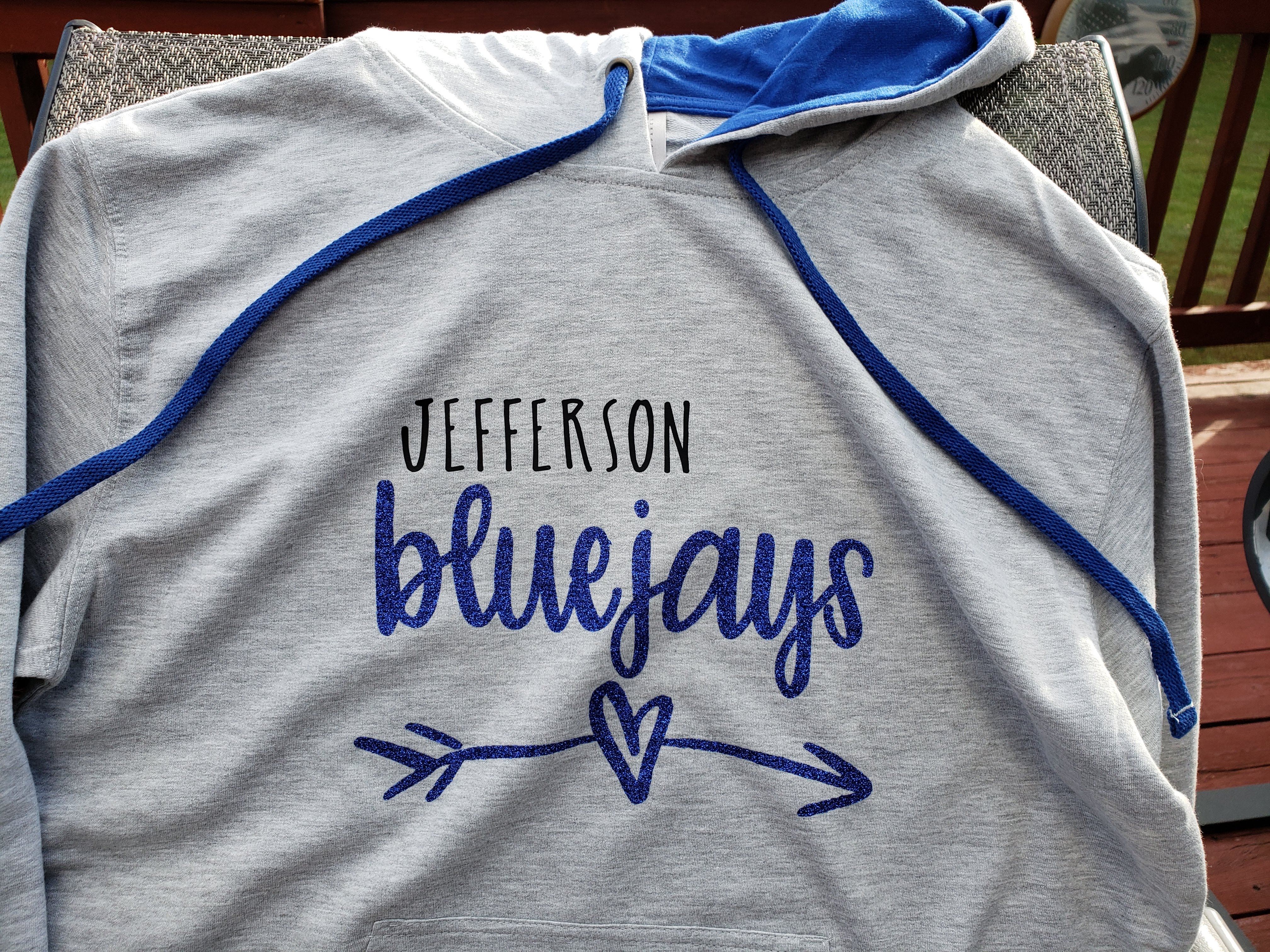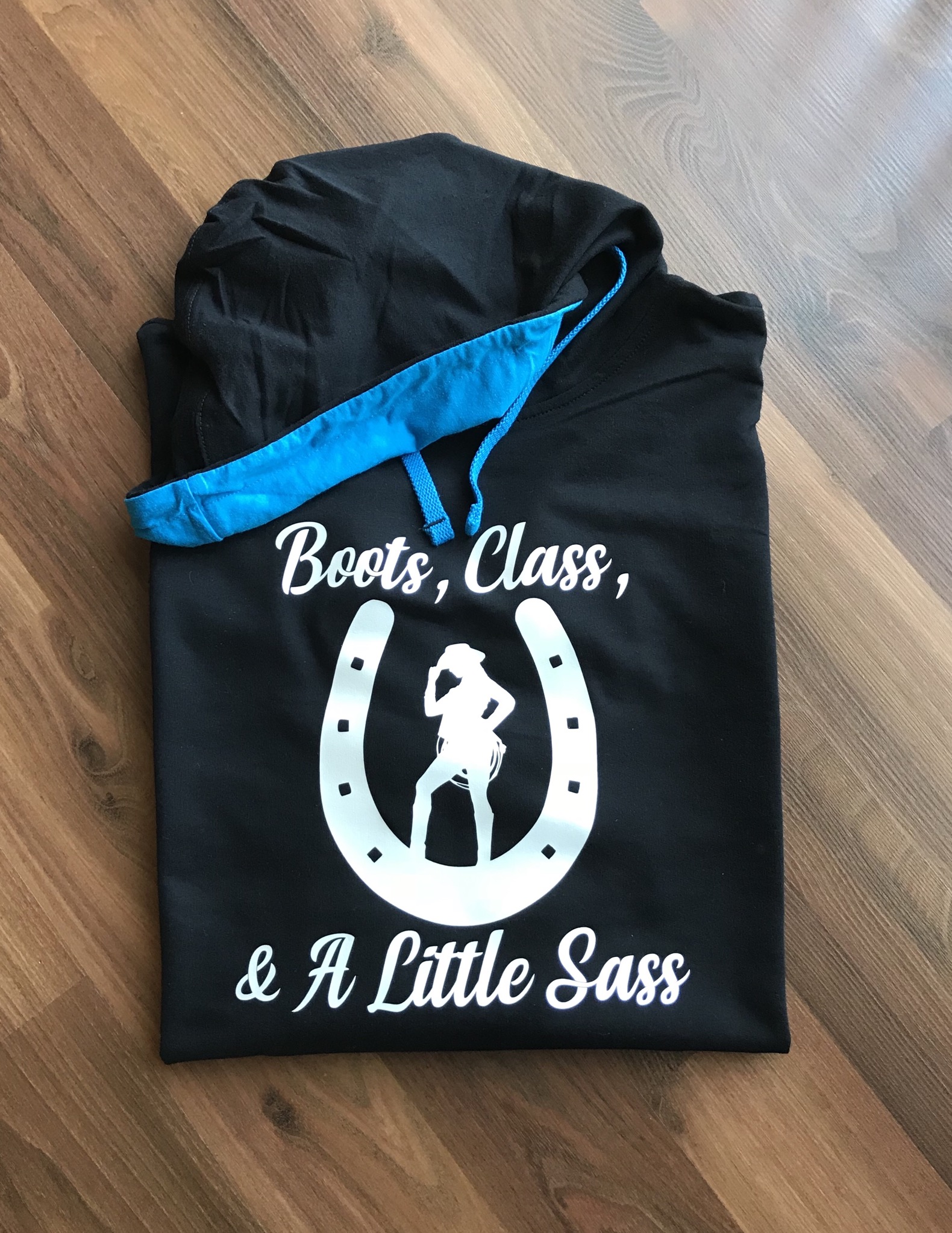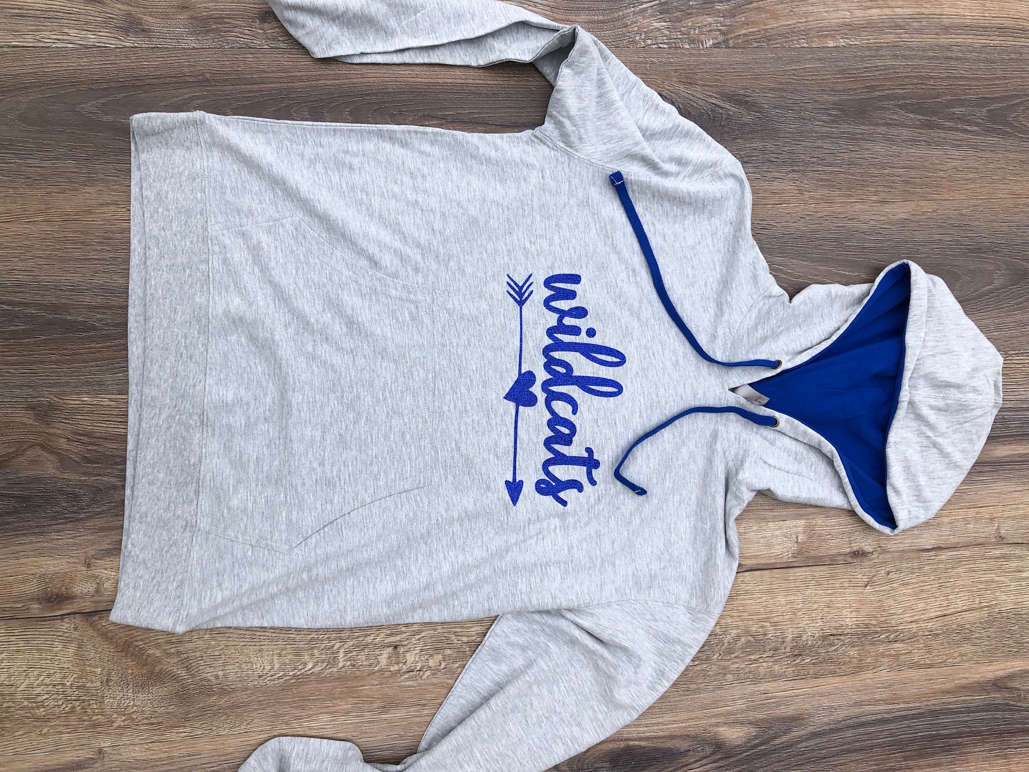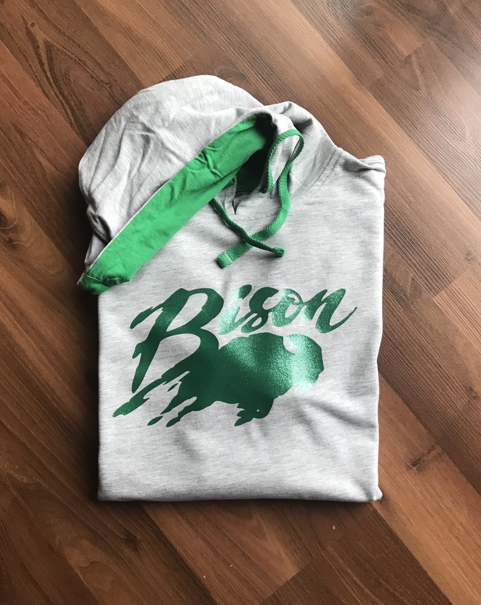 - Contrast and matching jersey lined hood and drawcord