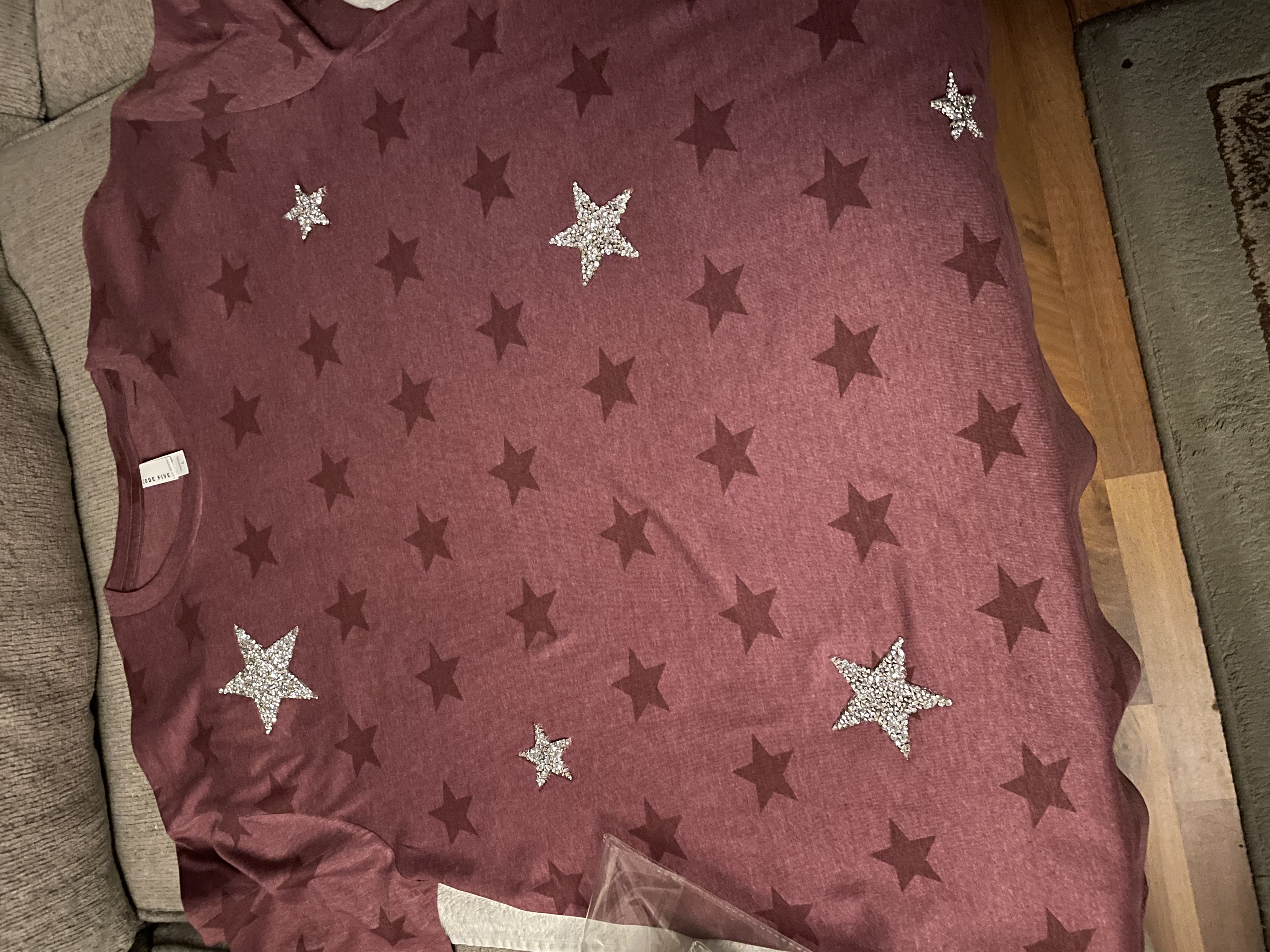 Code Five 3929 - Unisex Star Print T-Shirt - Burgundy Star