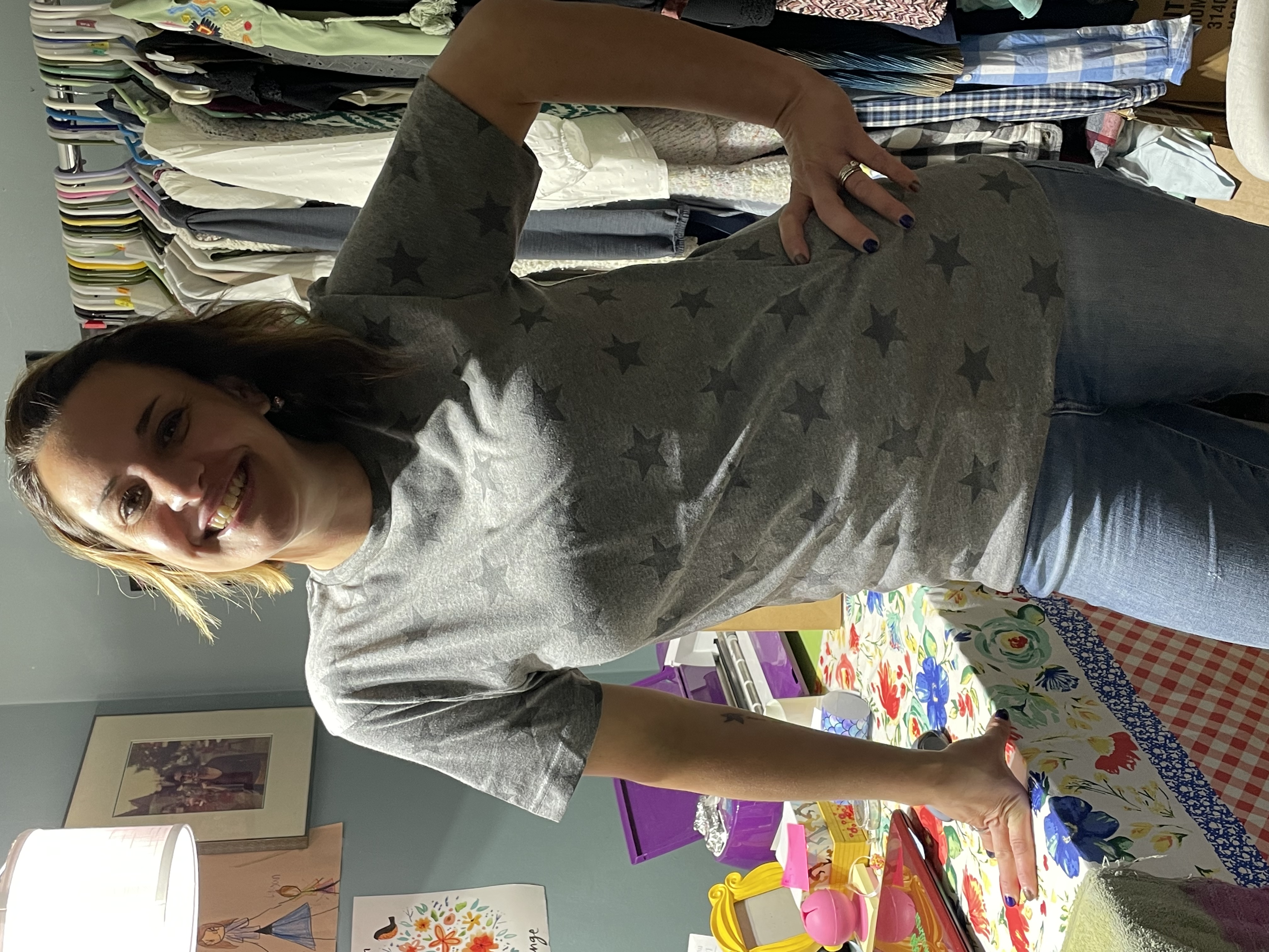 - 4.5 oz., 60% combed ringspun cotton/ 40% polyester printed stars vintage fine jersey