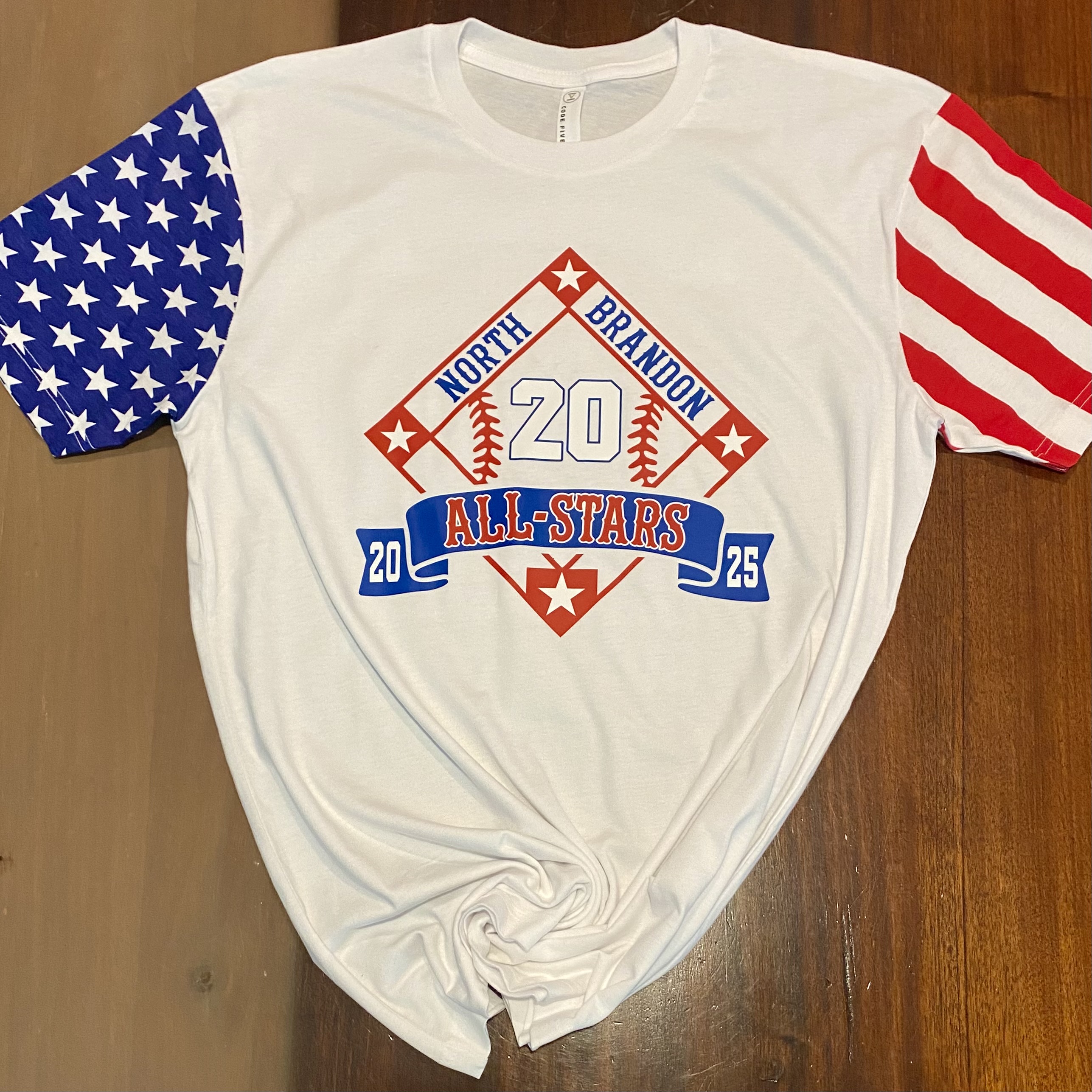 The Code Five Men's Stars & Stripes T-Shirt is your canvas for creativity! Crafted from 100% cotton, this tee features double-needle sleeves, a ribbed collar, and side seam construction for durability and comfort. Its patriotic print is ideal for direct-to-garment, DTF Transfers, and more, ensuring vivid designs that last. Customers love its softness and adaptability for events like the 4th of July, praising its optimal fit and customization ease. Plus, 2% of sales help support veterans' families.