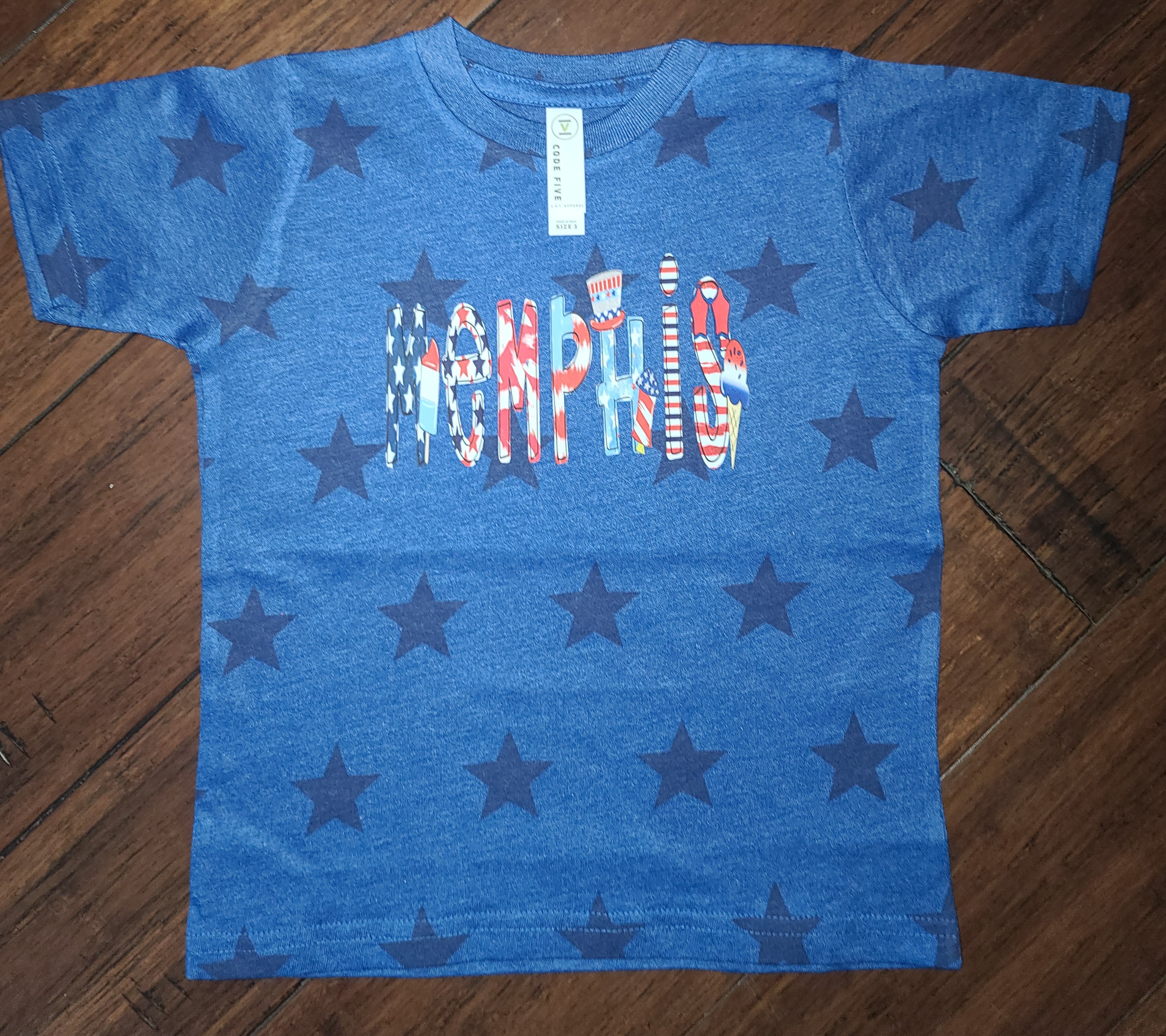- 4.5 oz., 60% combed ringspun cotton, 40% polyester vintage fine jersey with star print