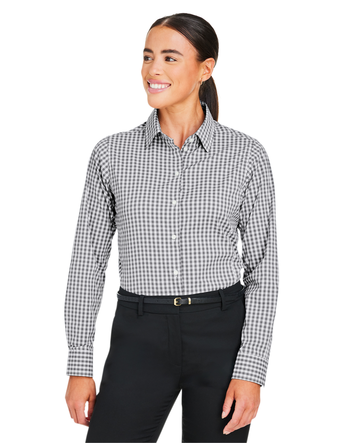 Devon & Jones DG536W - Crownlux Performance® Women's Gingham Shirt - GRAPHITE/WHITE