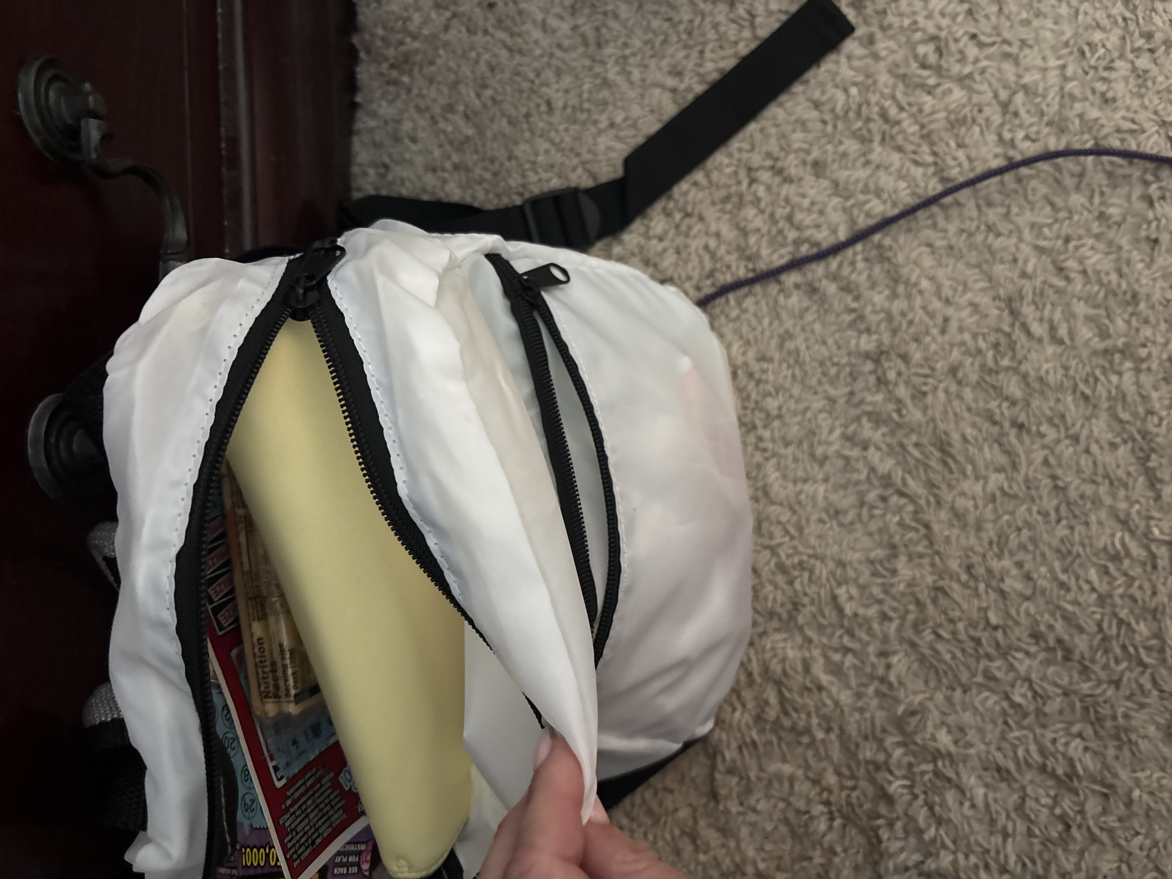 - Zippered opening to main compartment