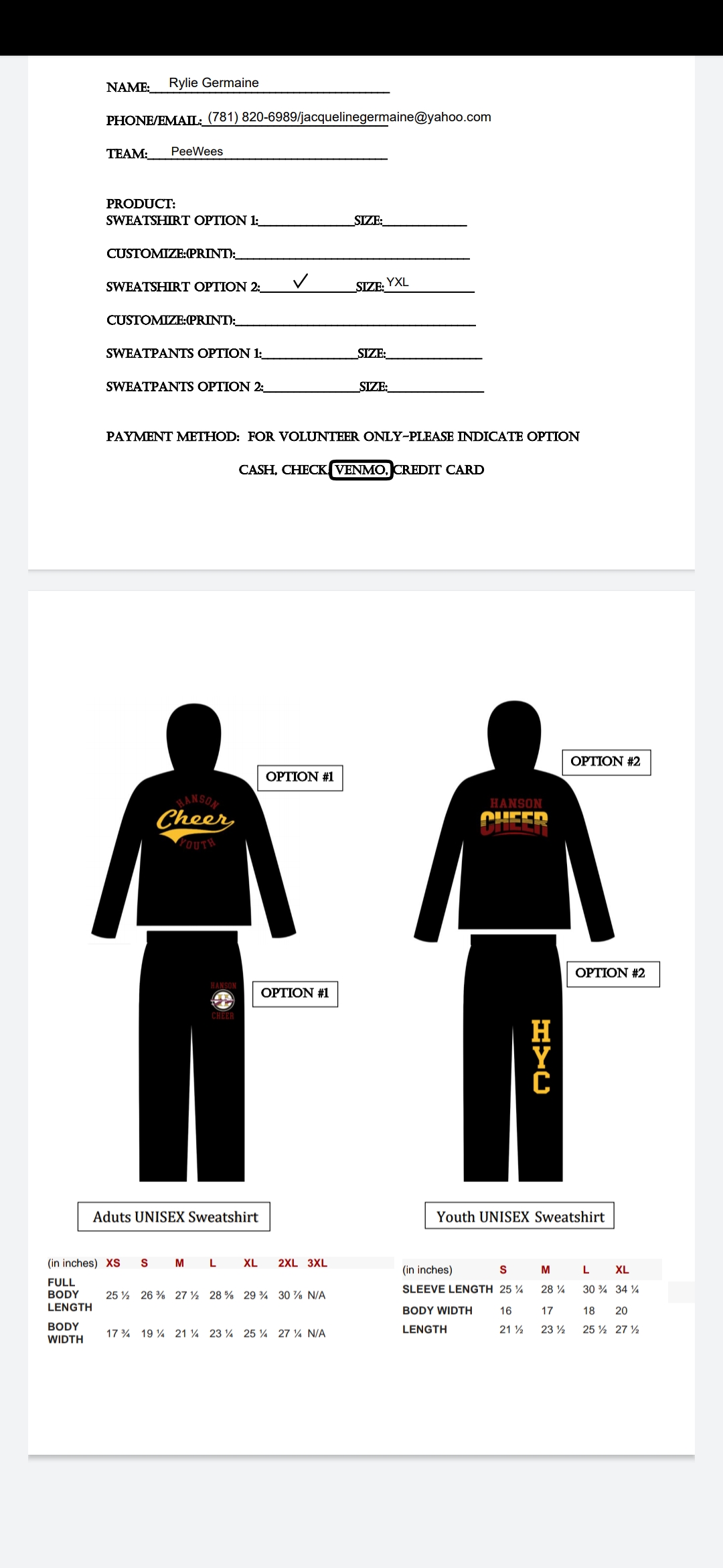 Pick your sizes