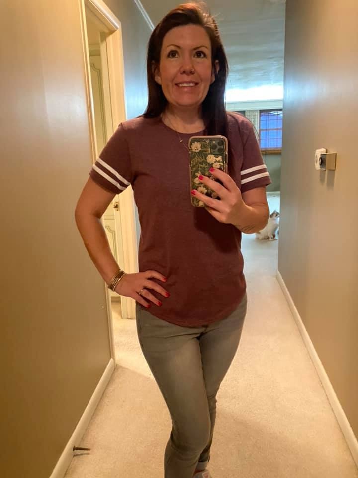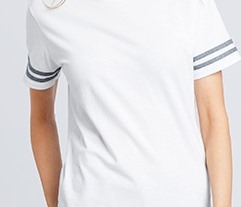 - 50% cotton, 50% polyster: Heather Red/White, Heather Maroon/White, Heather Navy/White, Heather Royal/White, Graphite Heather/Black