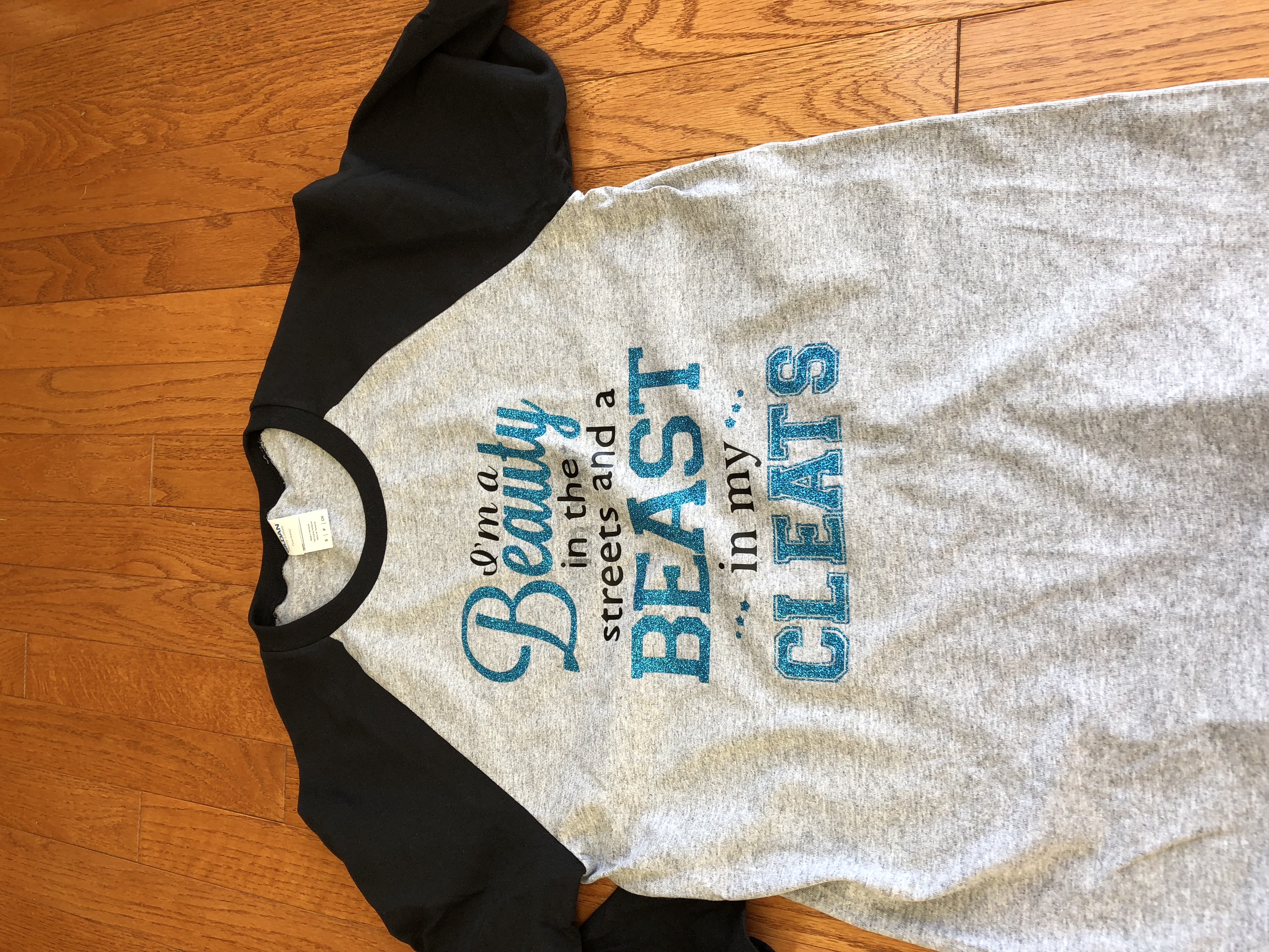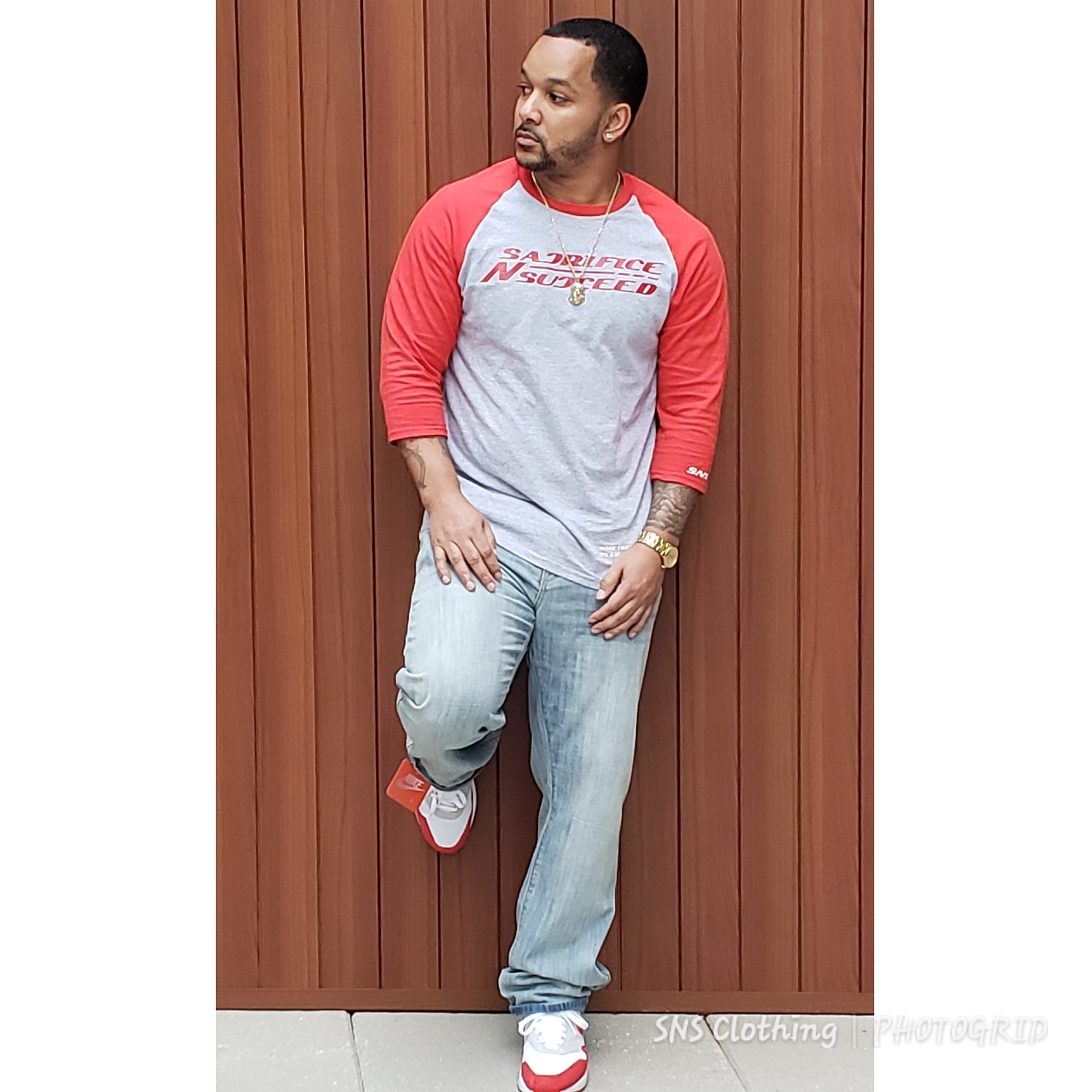 - Contrast color set-in collar and 3/4 raglan sleeve