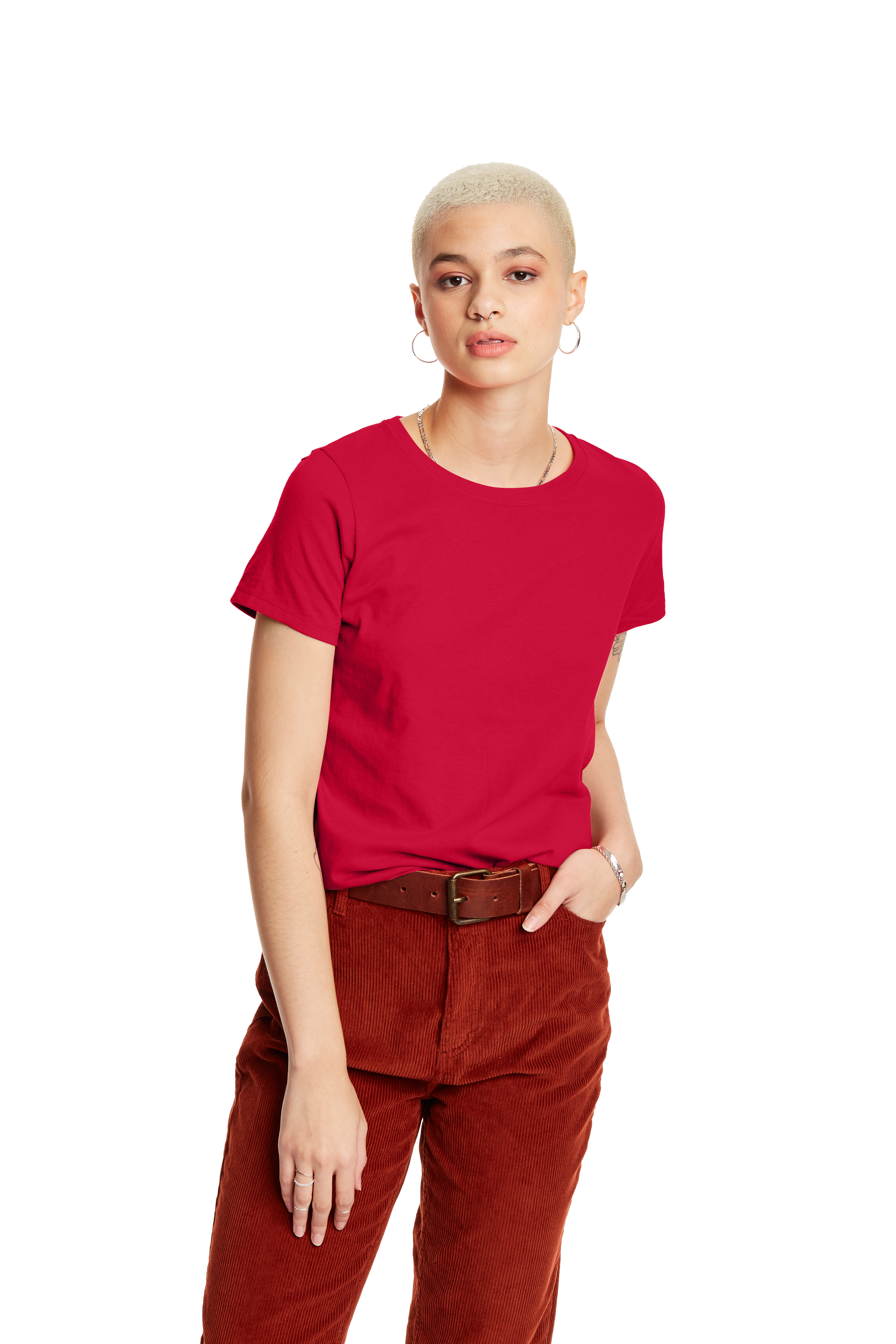 The Hanes Women's Short Sleeve Essential-T offers durable comfort and style. Crafted from 100% ComfortSoft® cotton and Light Steel with 10% polyester, this tee is available in over 10 vibrant colors. Tailored for a woman's fit, it features double-needle stitching and a narrow coverseamed neck. Ideal for DTF Transfers, vinyl, and heat press, customers love its thickness and softness, optimal for both casual wear and custom projects. Some find the fit boxy, but many value its realistic sizing and comfort.