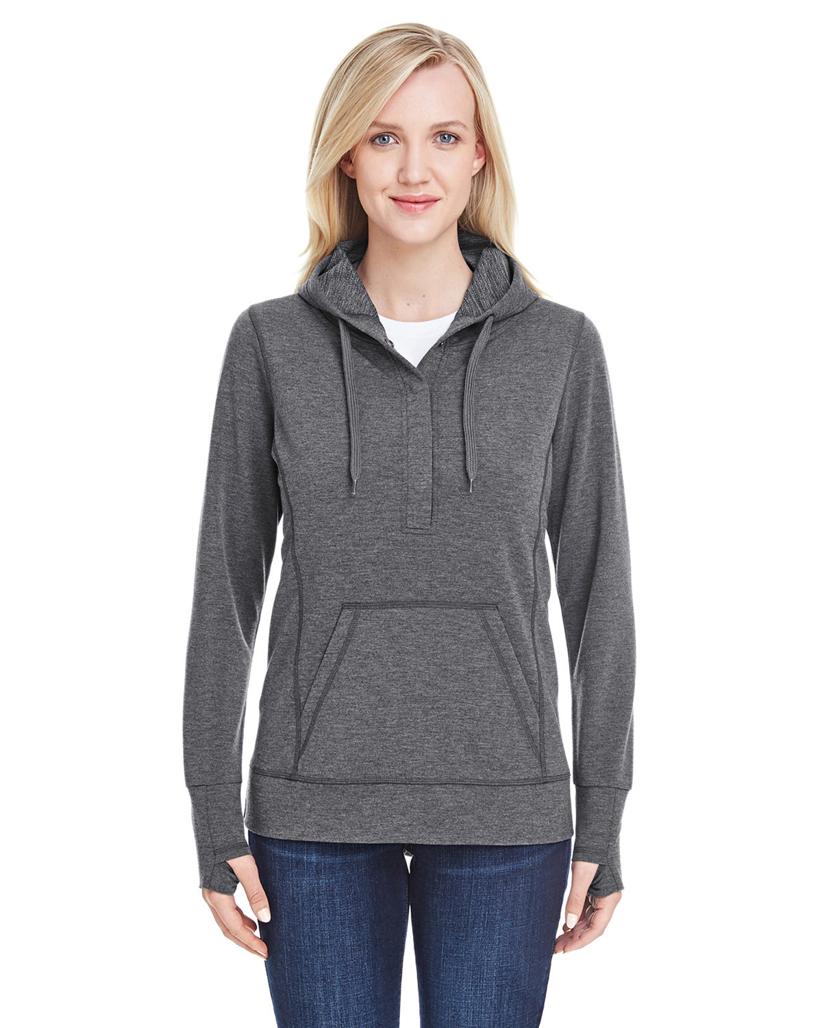 J America JA8431 - Women's Omega Stretch Snap-Placket Hoodie - Charcoal Triblend