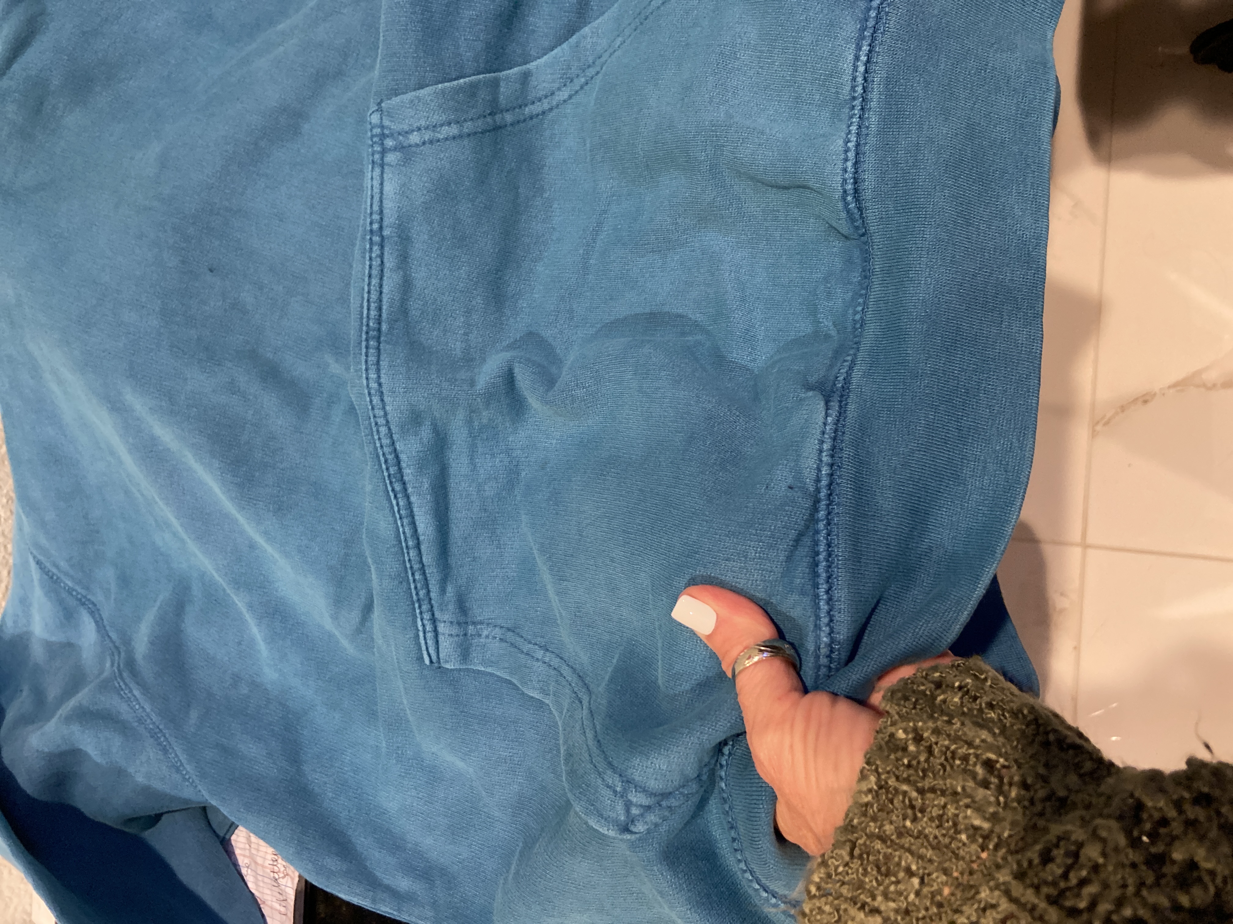 - Double-needle top stitch on all seams, matching draw cord