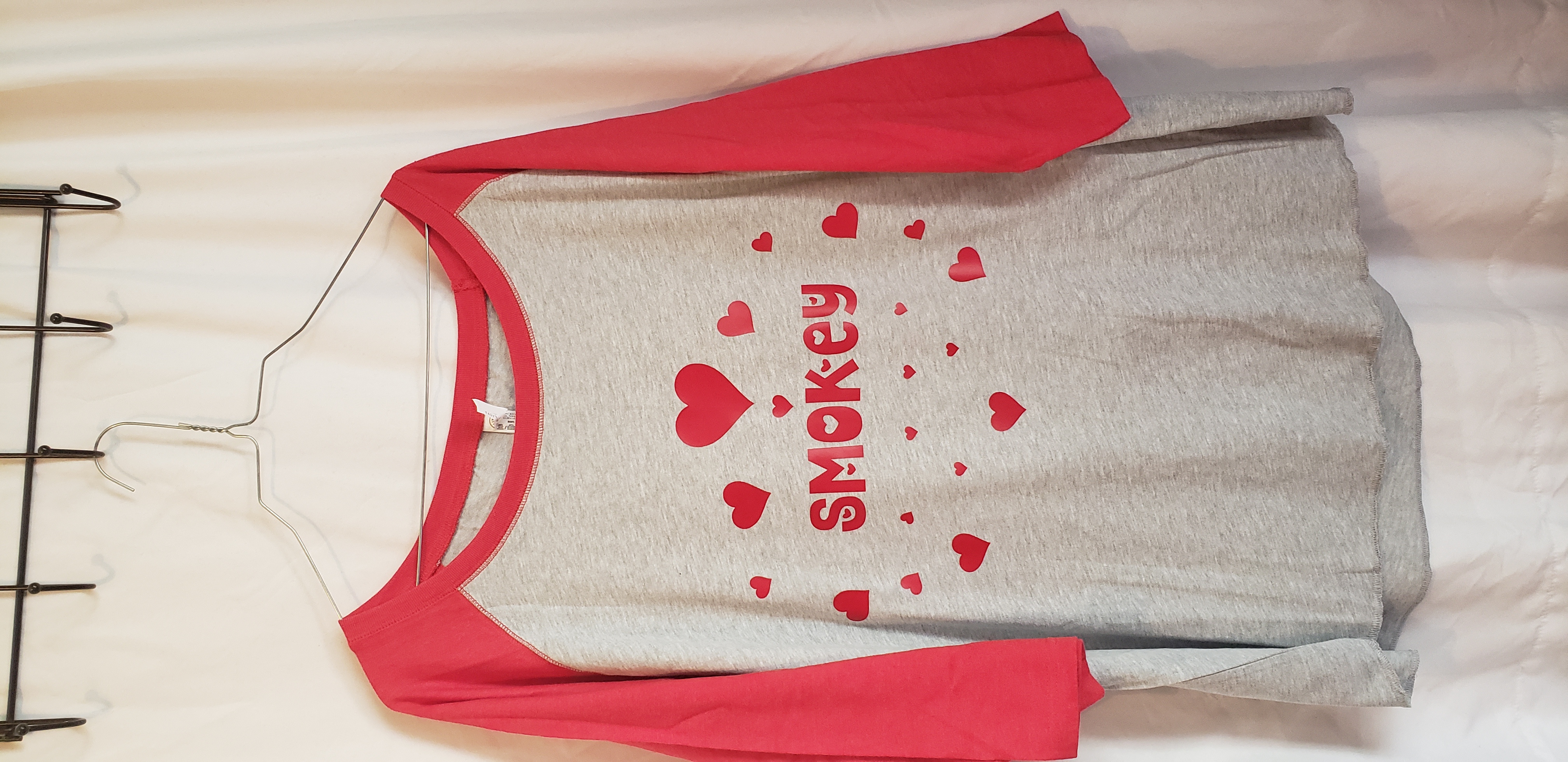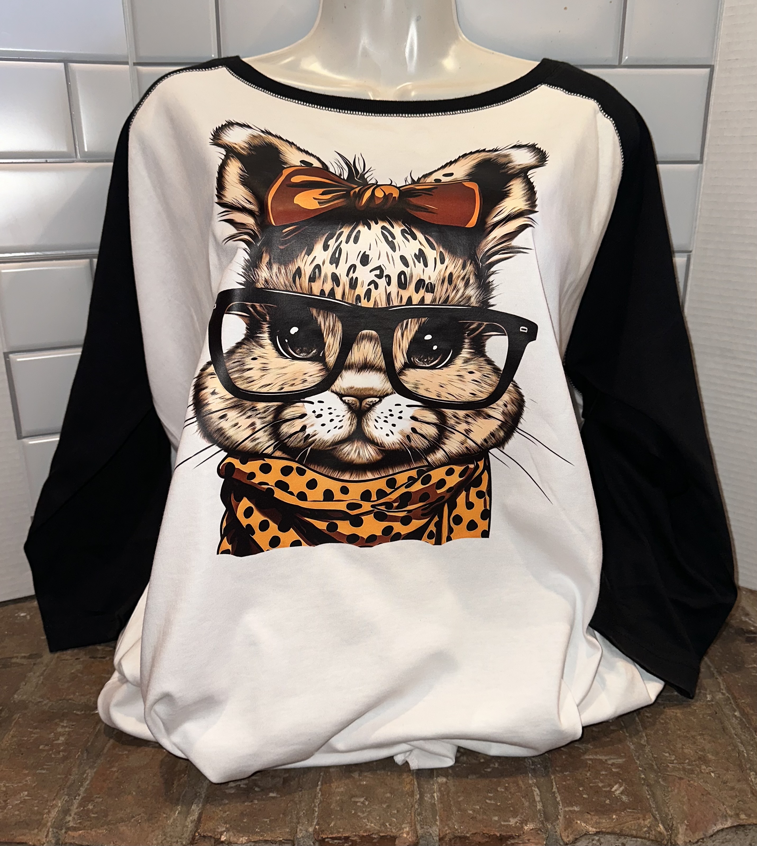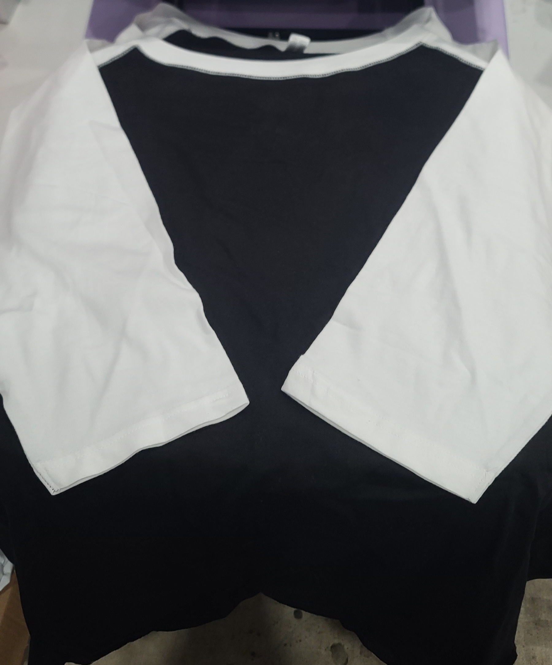 - Contrast double needle hem raglan 3/4 sleeves