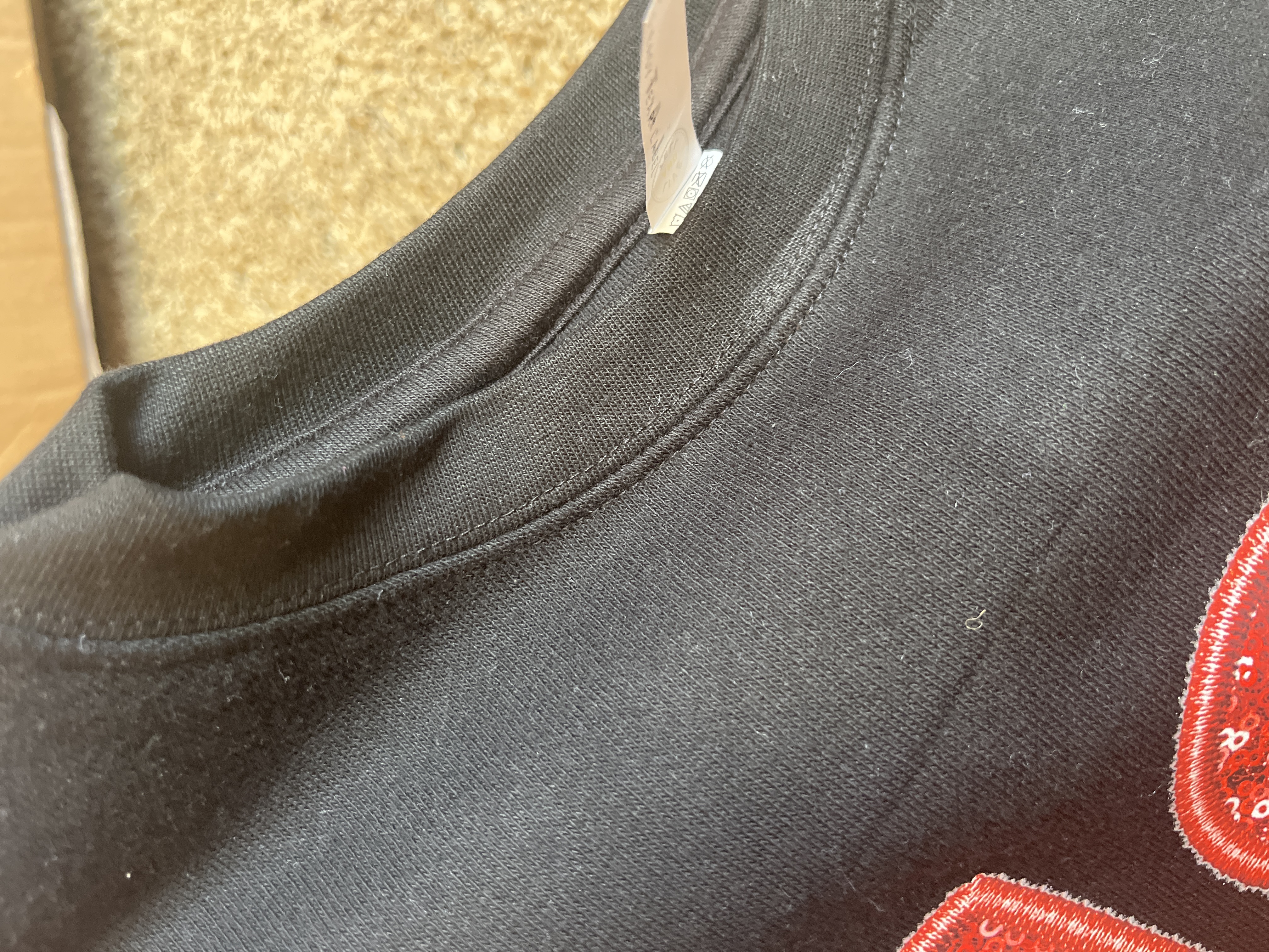 - Ribbed crew neck and cuffs