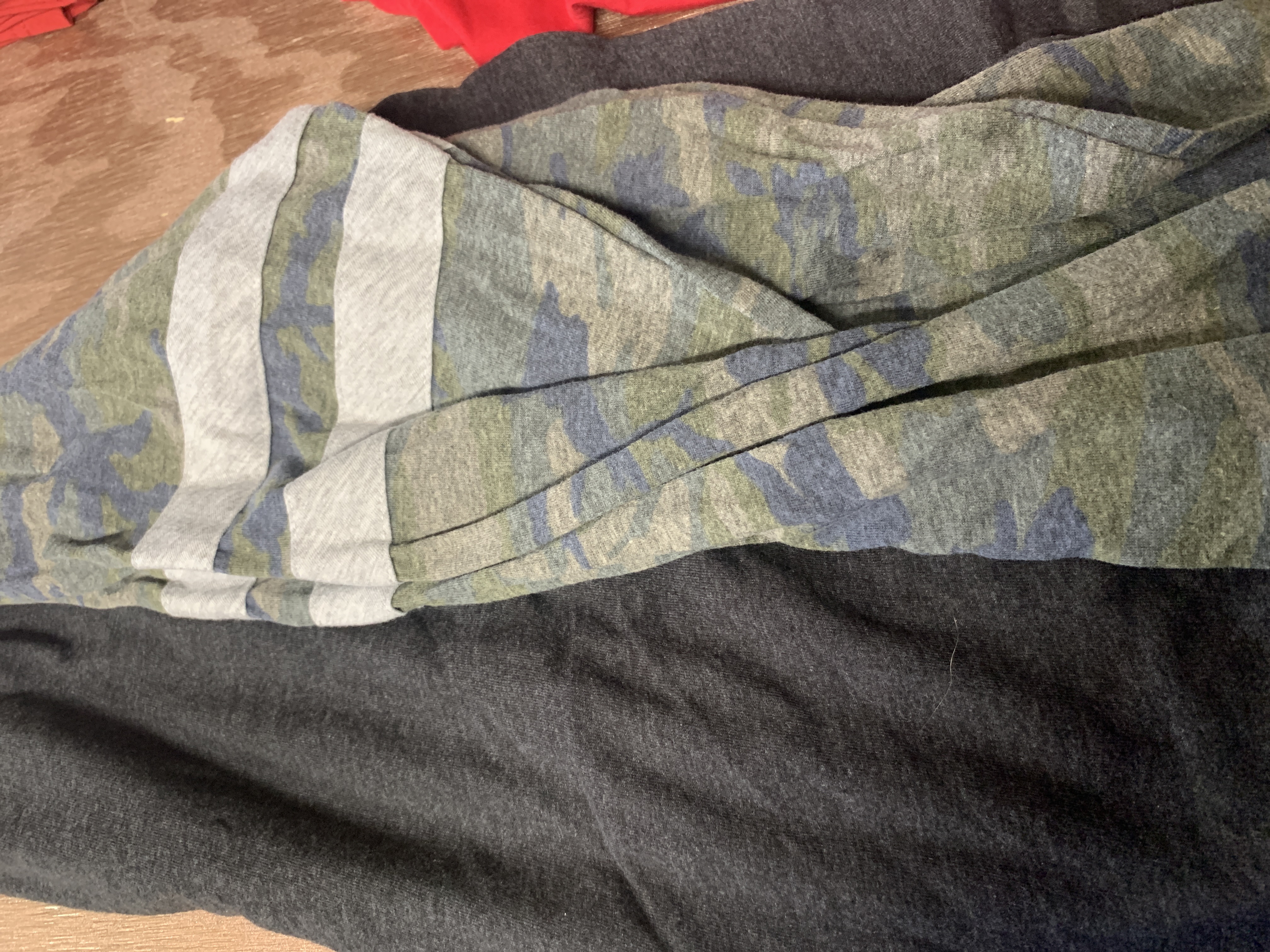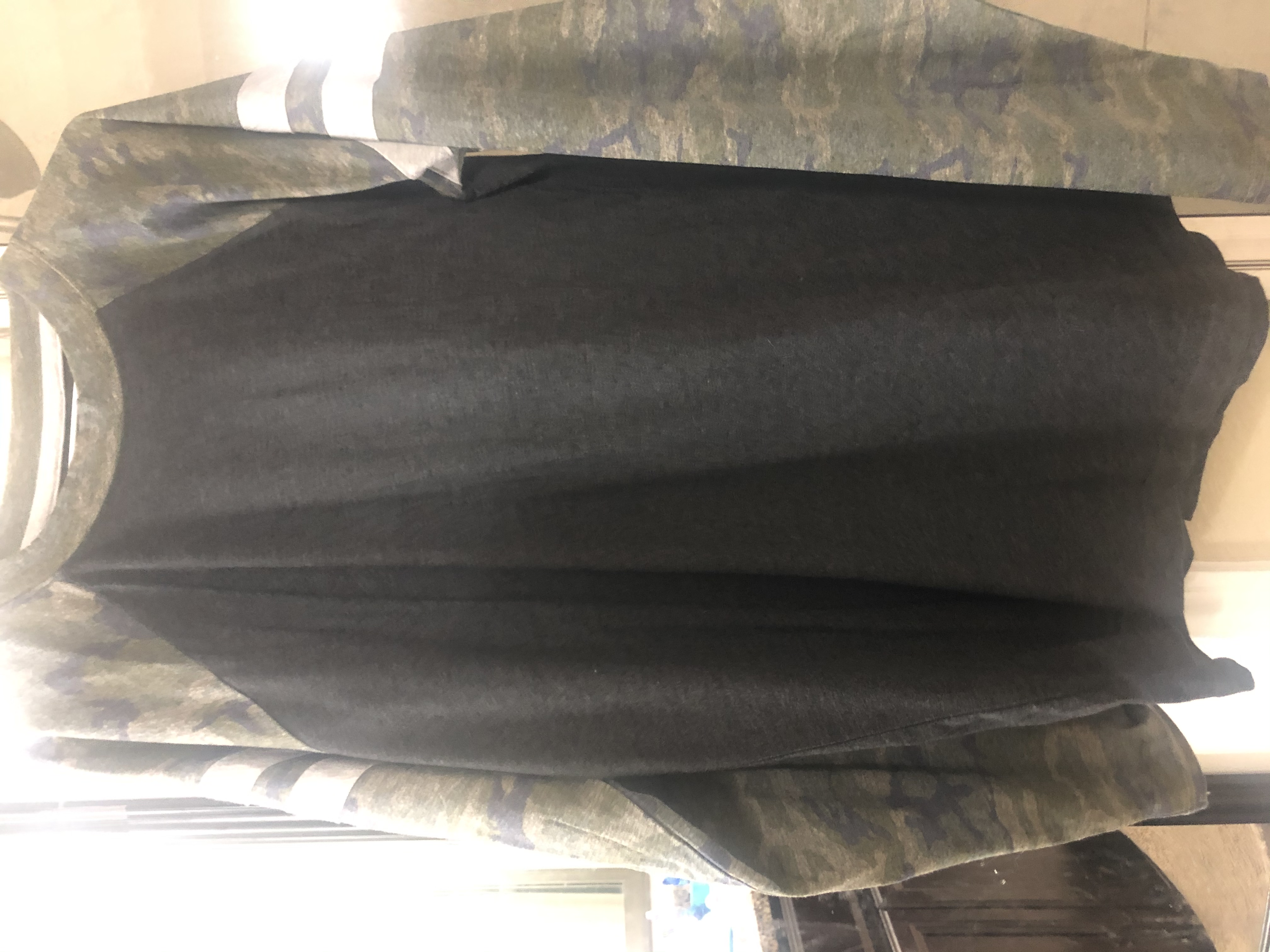 - Contrast topstitched self-fabric sleeve stripes