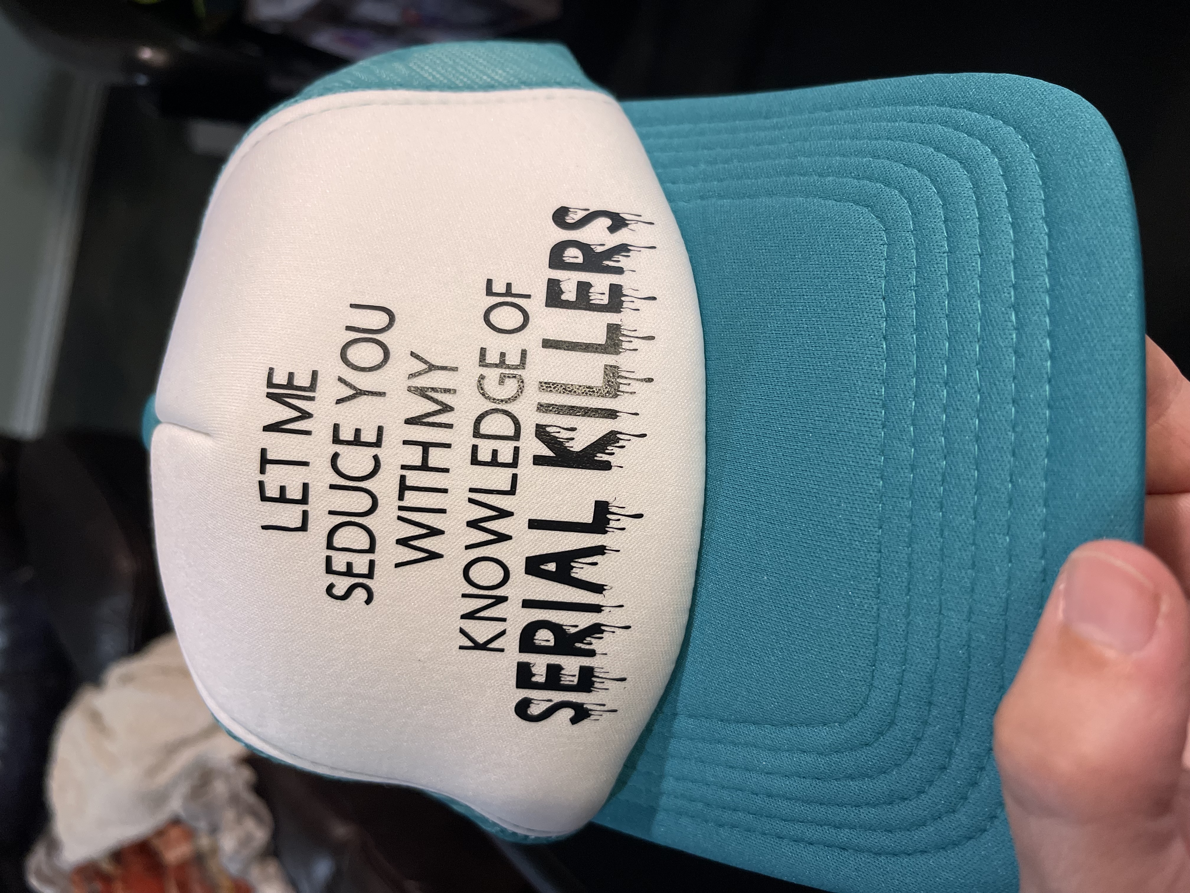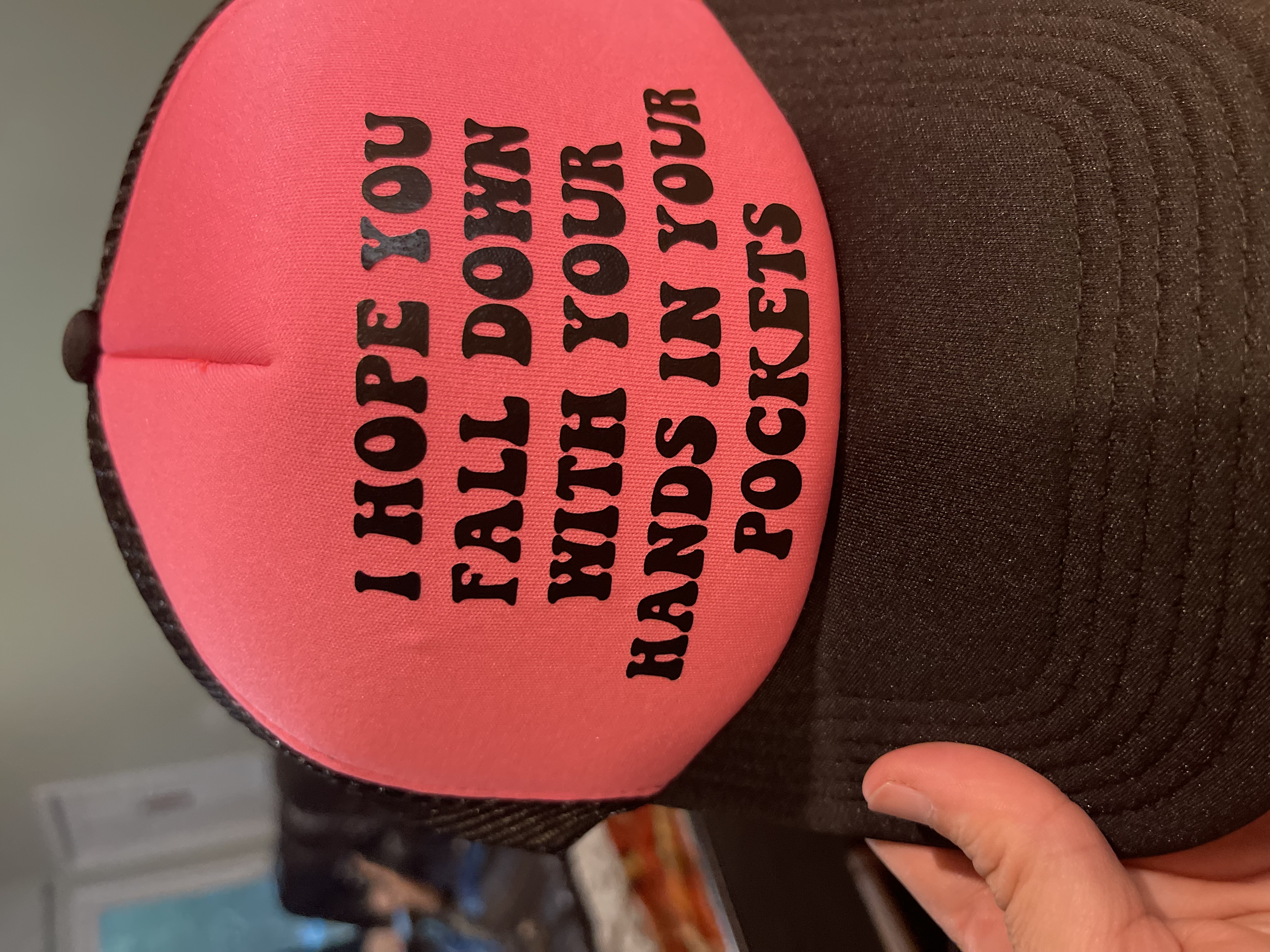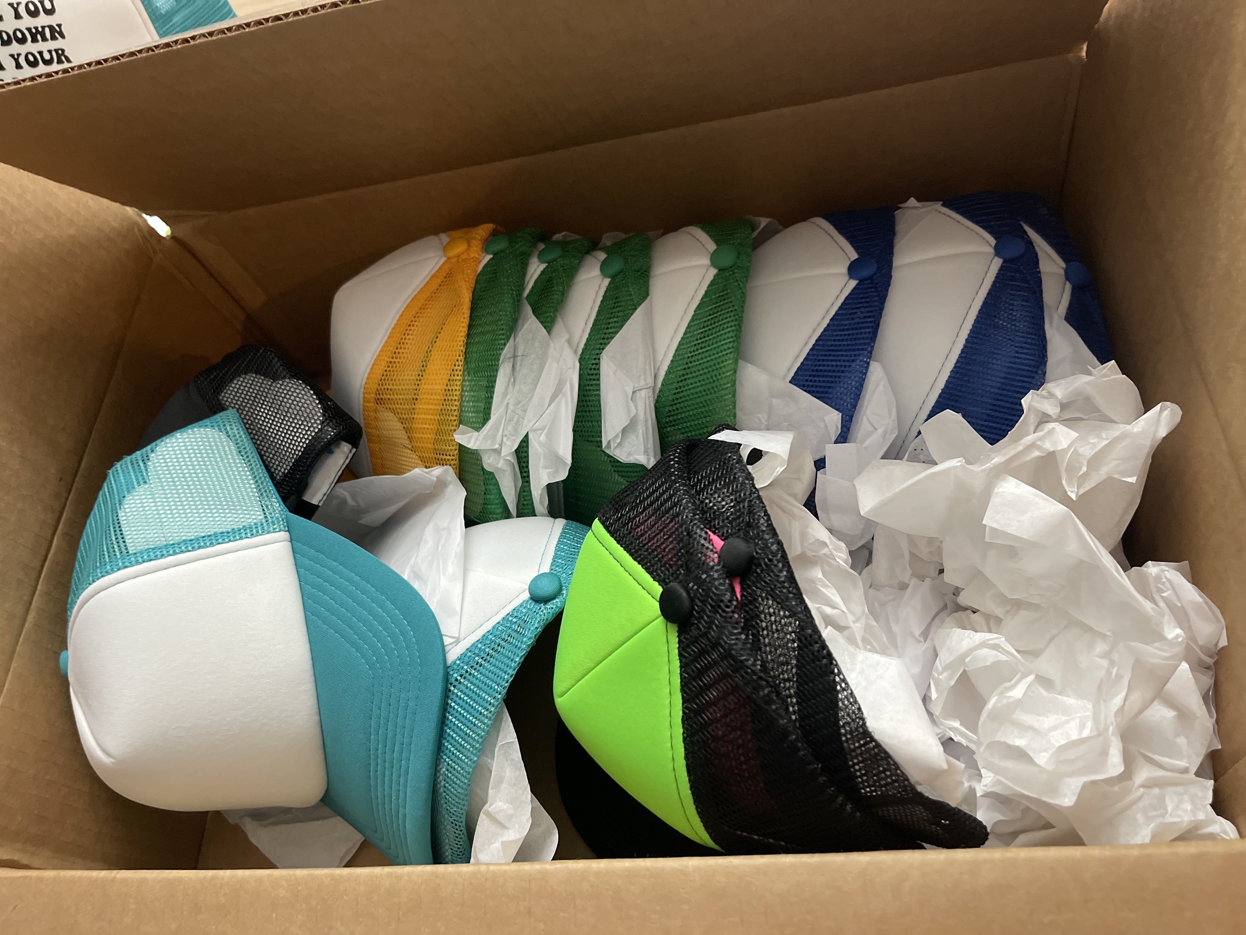 - Polyester foam front with mesh back