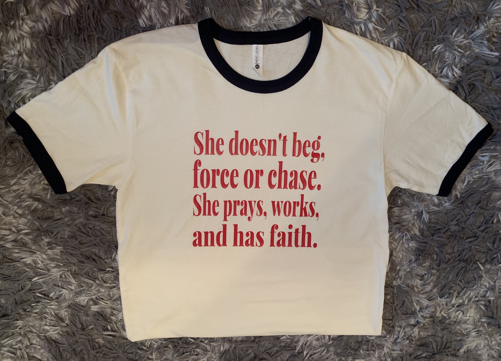 The Next Level Ladies' Ringer T-Shirt offers timeless style and comfort. Crafted from 100% combed ring-spun cotton, this fine jersey tee is pre-laundered to minimize shrinkage. Available in three chic colors, it features a tear-away label and stylish binded collar and cuffs. Ideal for customization, its high-quality fabric excels with DTF Transfers, vinyl, and more, ensuring vibrant and lasting designs. Customers rave about its softness and durability, optimal for creating unique, well-loved pieces.