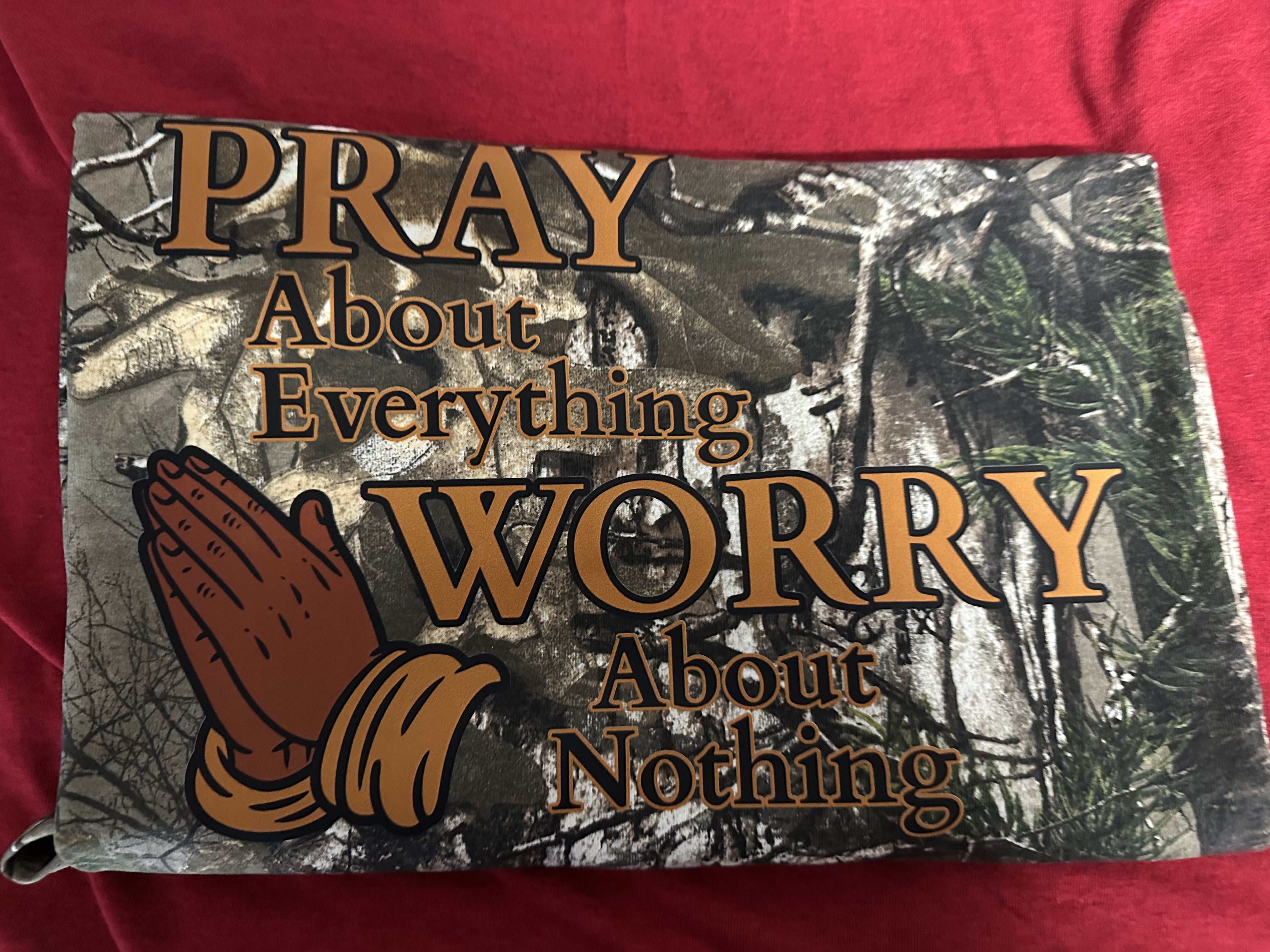 - The camo print is pigment-dyed. Special consideration must be taken when printing white ink on pigment-dyed cotton.