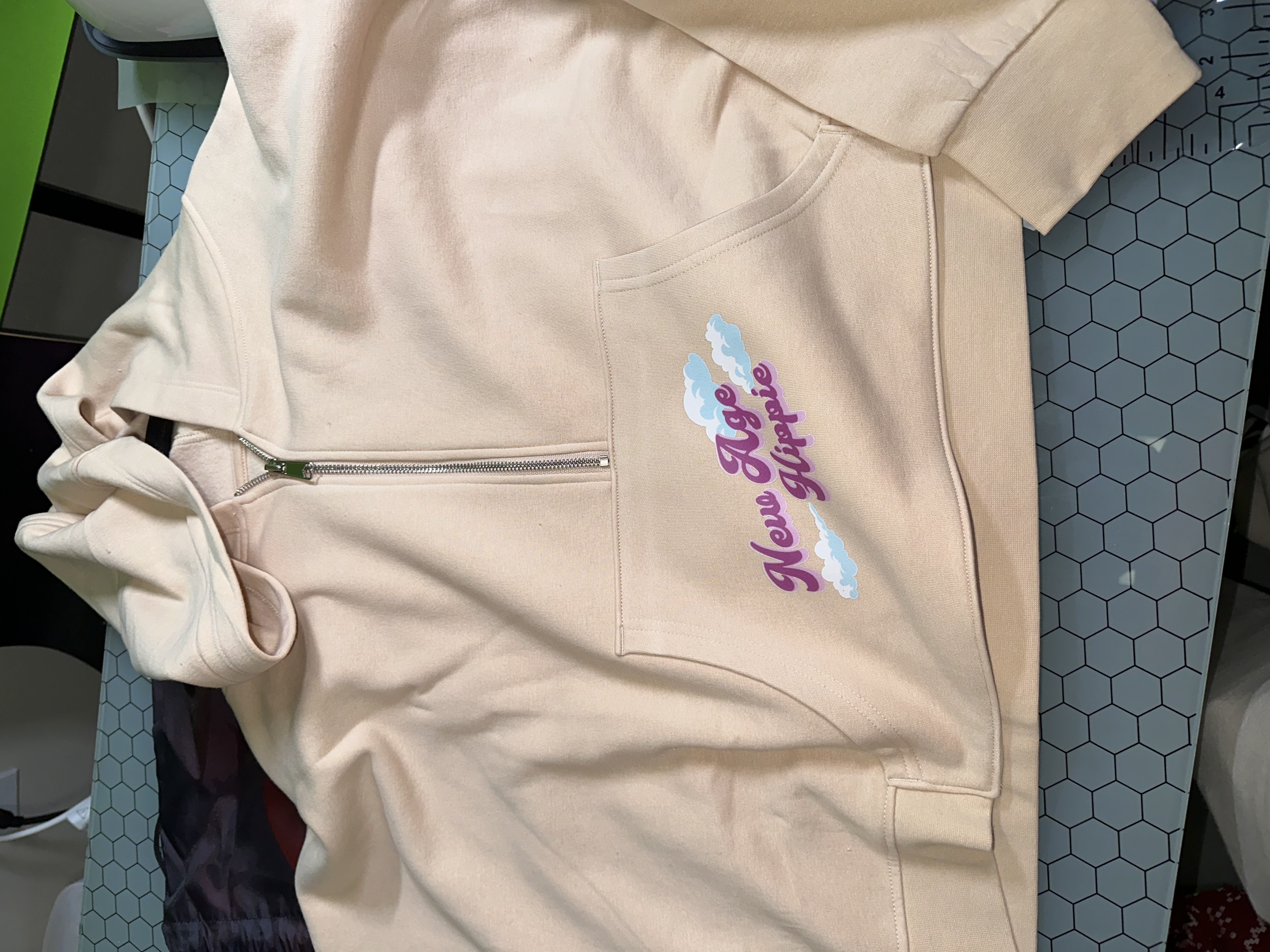 The TriDri Ladies' Alice Half-Zip Hooded Sweatshirt combines comfort with style. Crafted from 60% cotton and 40% recycled polyester, this sweatshirt features a unique oversized, cropped fit with integrated thumbholes and a cozy double-panel hood. Available in 7 vibrant colors, it's optimal for personalization. Ideal for DTF Transfers and direct-to-garment, its fabric blend ensures vibrant, lasting custom designs. The tear-away label adds convenience for rebranding, making it a favorite for crafting projects.